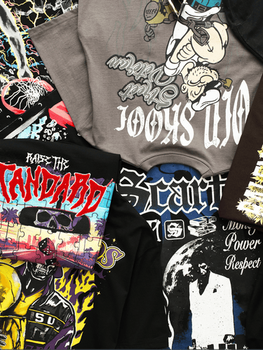 Scarface Embroidery Large Back Print Short Sleeve Tee - Khaki