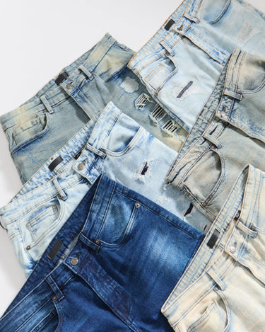 Ripped And Repaired Washed Denim Jeans - Light Blue