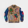 Paper Chaser Chenille Patched Varsity Jacket - Khaki