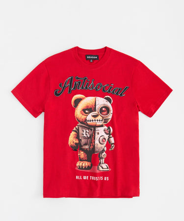 Antisocial Bear Chenille Patched Short Sleeve Tee - Red