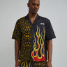 Cheetah And Flames Split Woven Short Sleeve Shirt