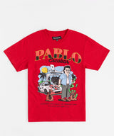 Pablo Cartoon Applique Short Sleeve Tee - Red