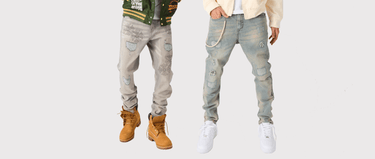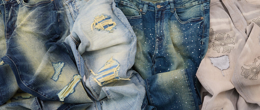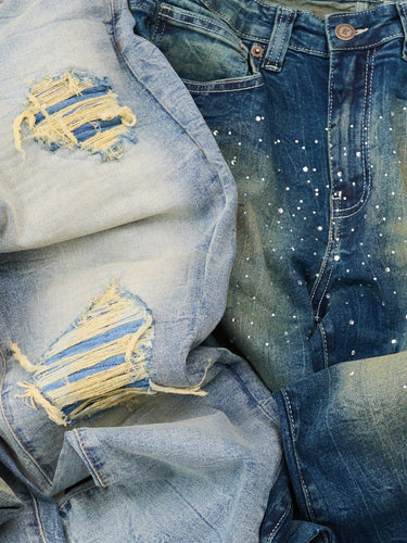 Ripped And Repaired Denim Pants - Vintage Blue