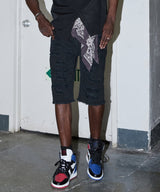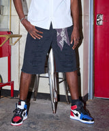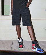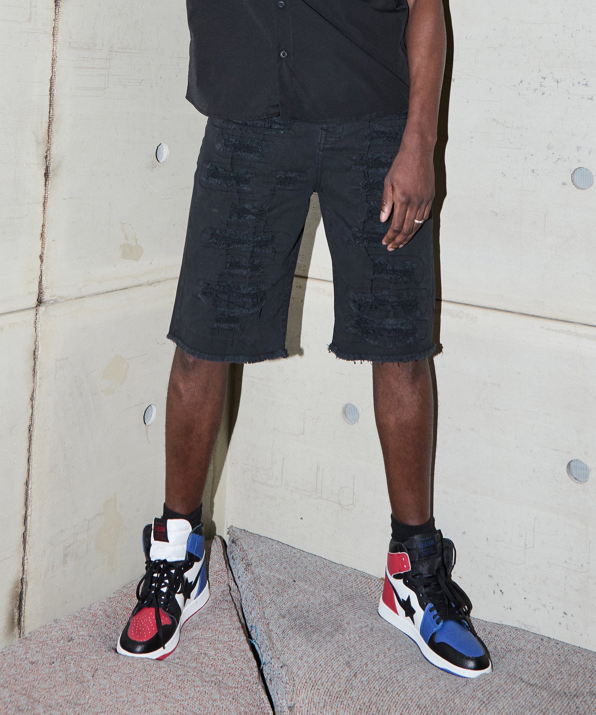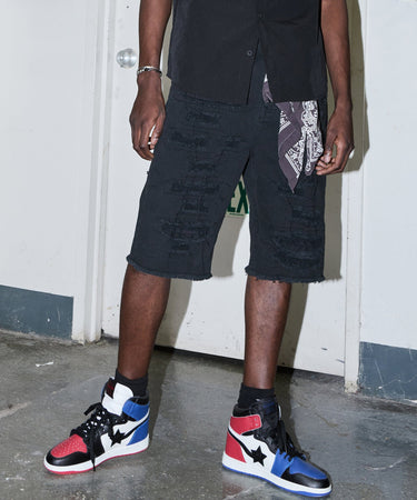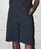 Destroyed Denim Shorts - Black
