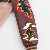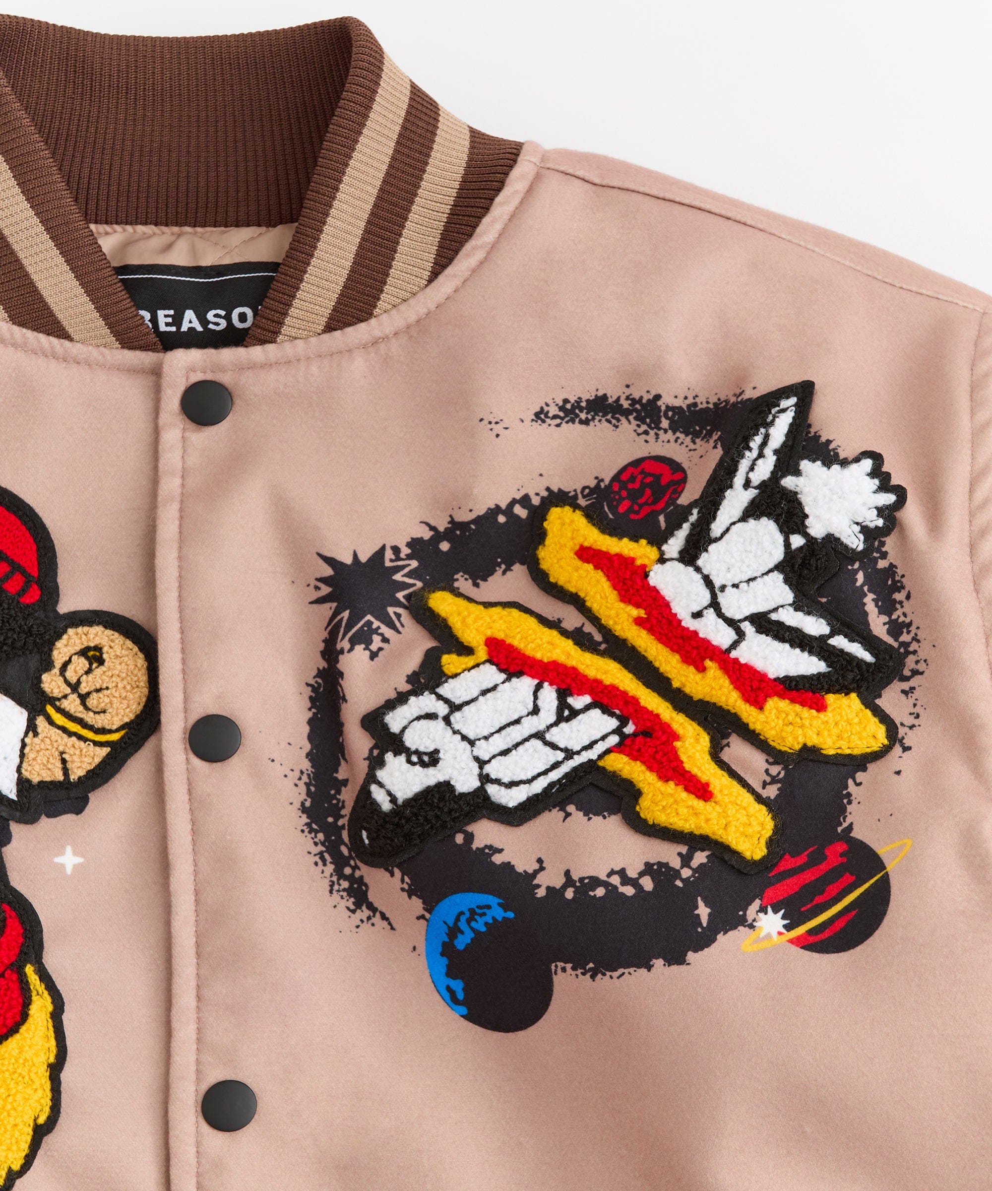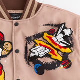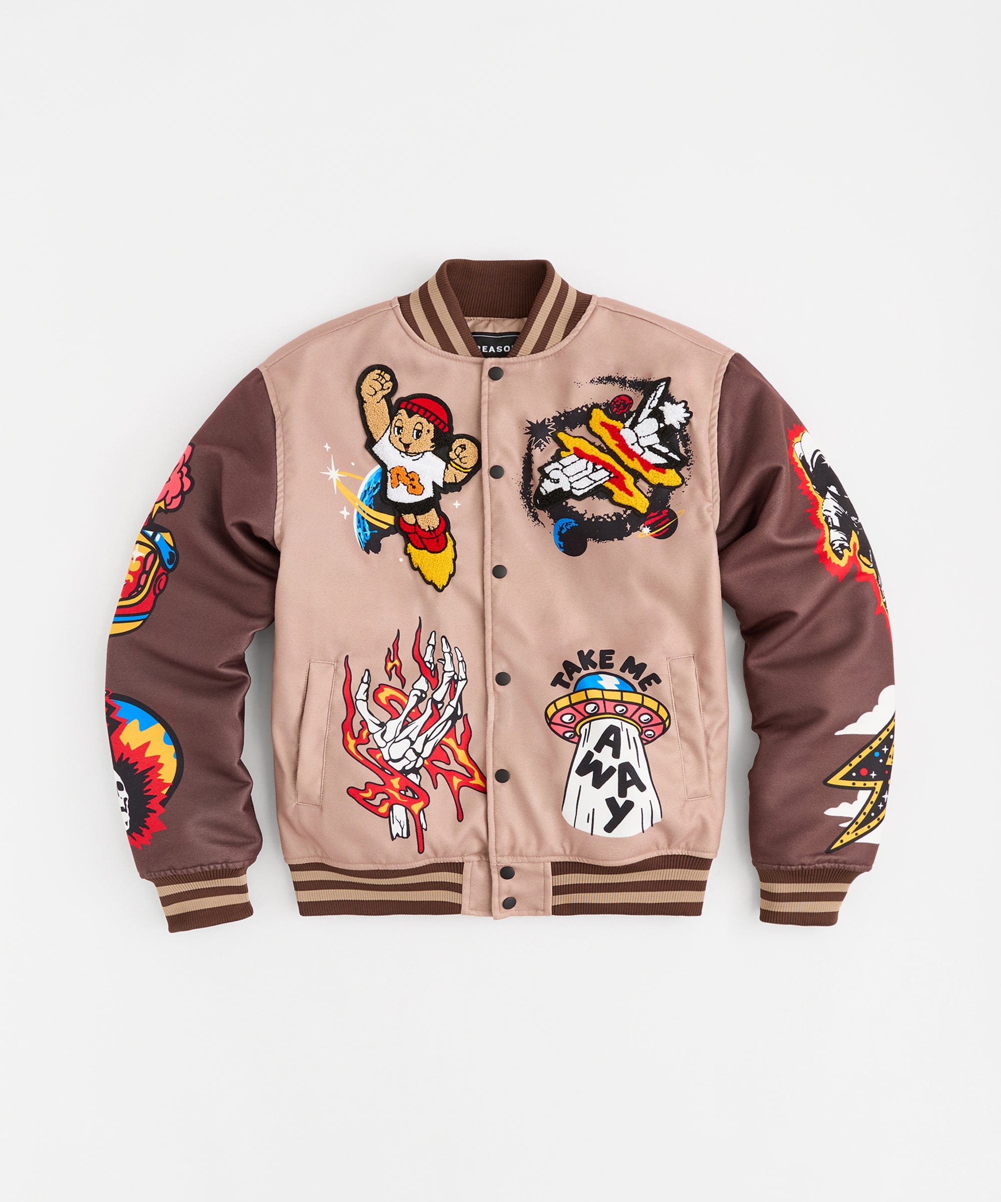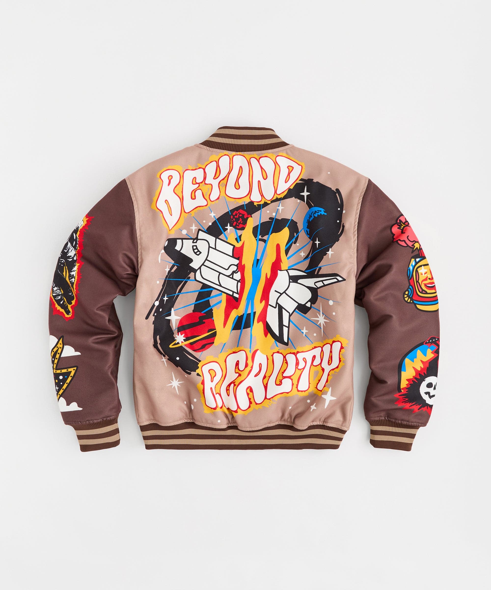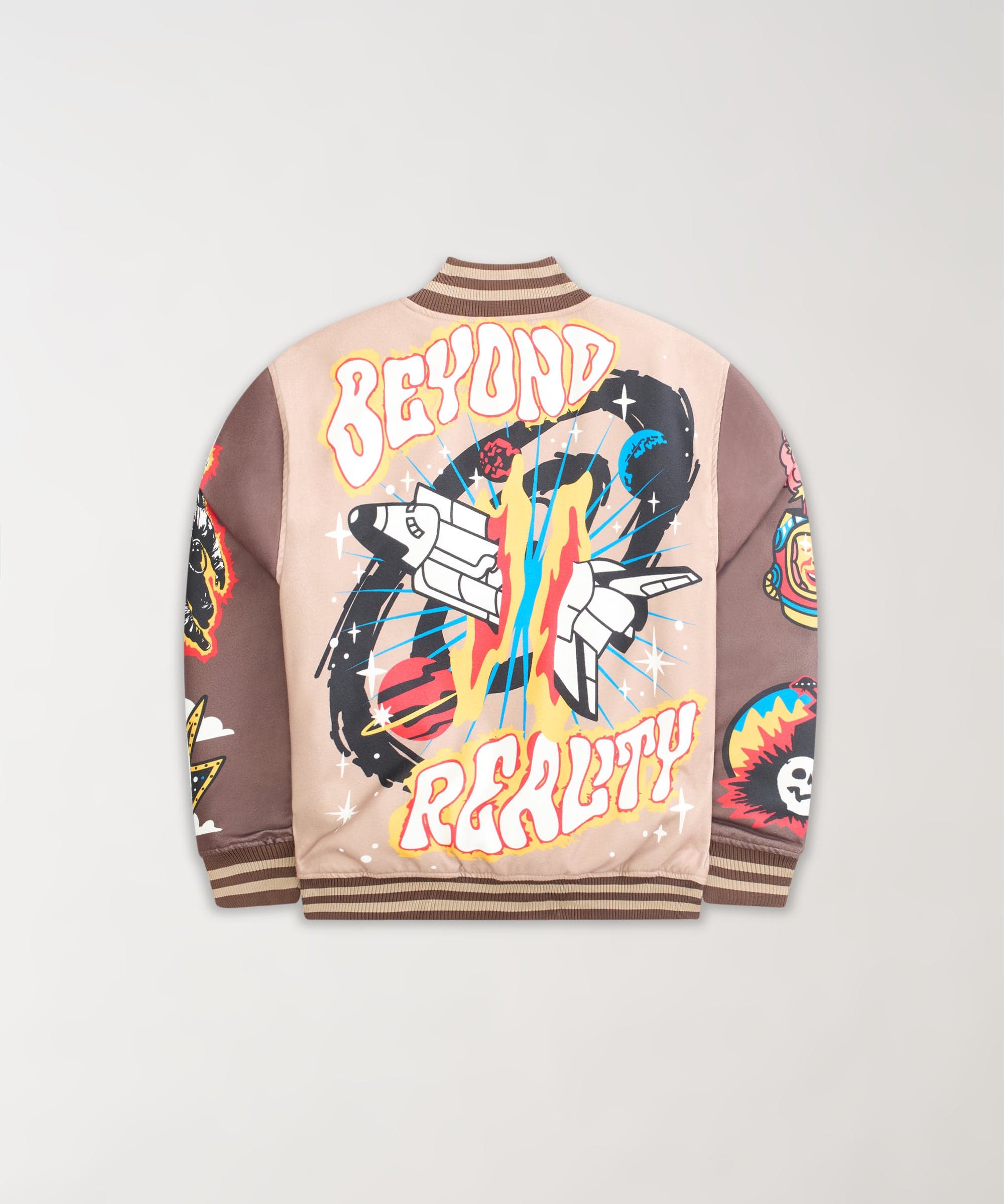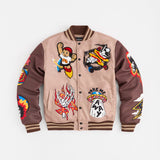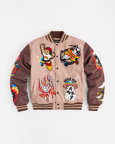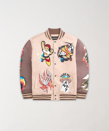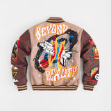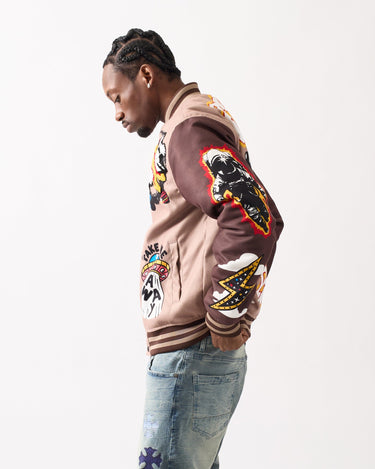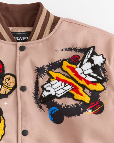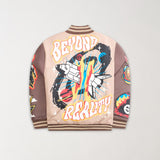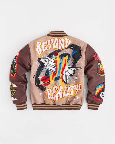 Beyond Reality Embroidered Varsity Jacket - Khaki
