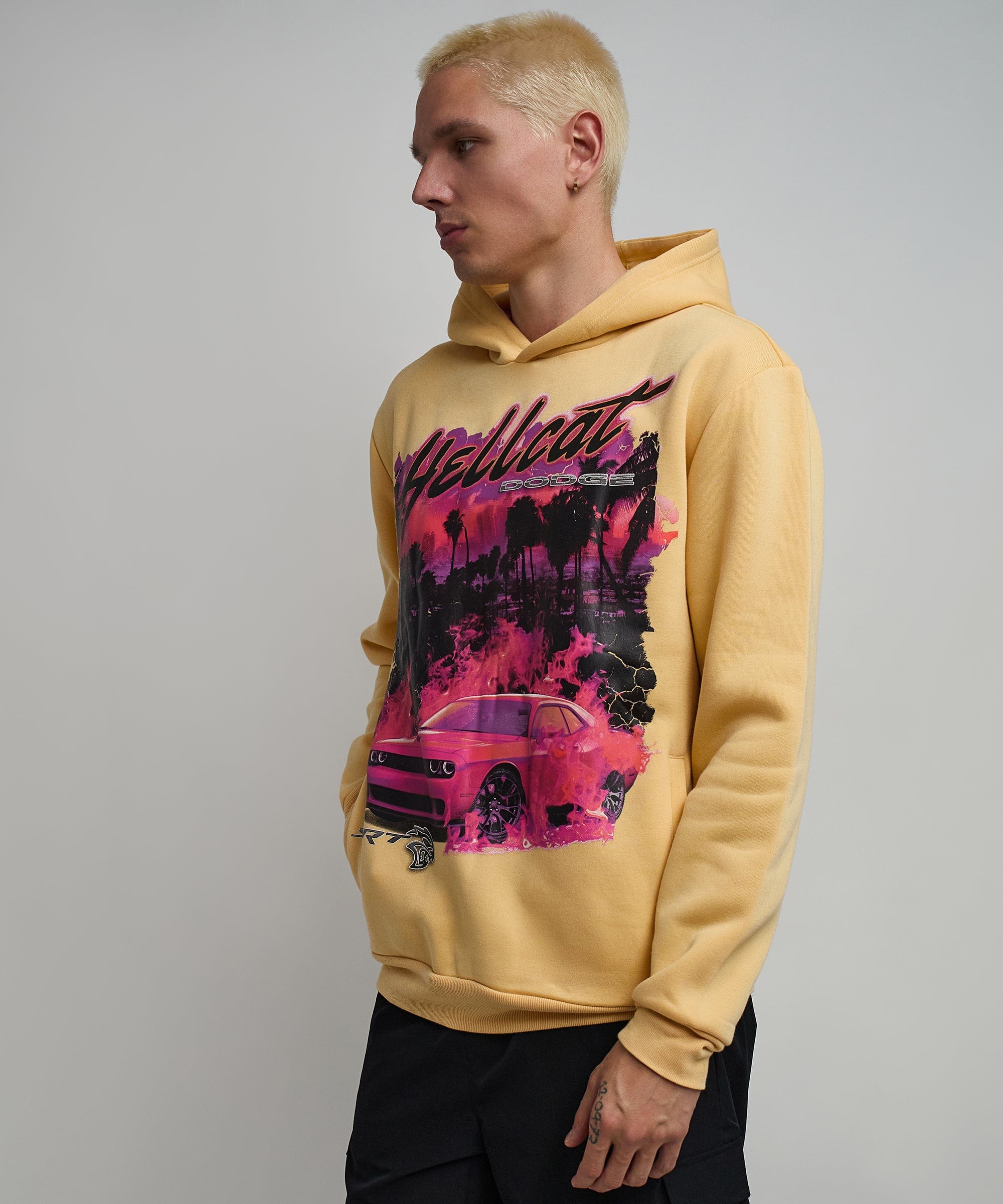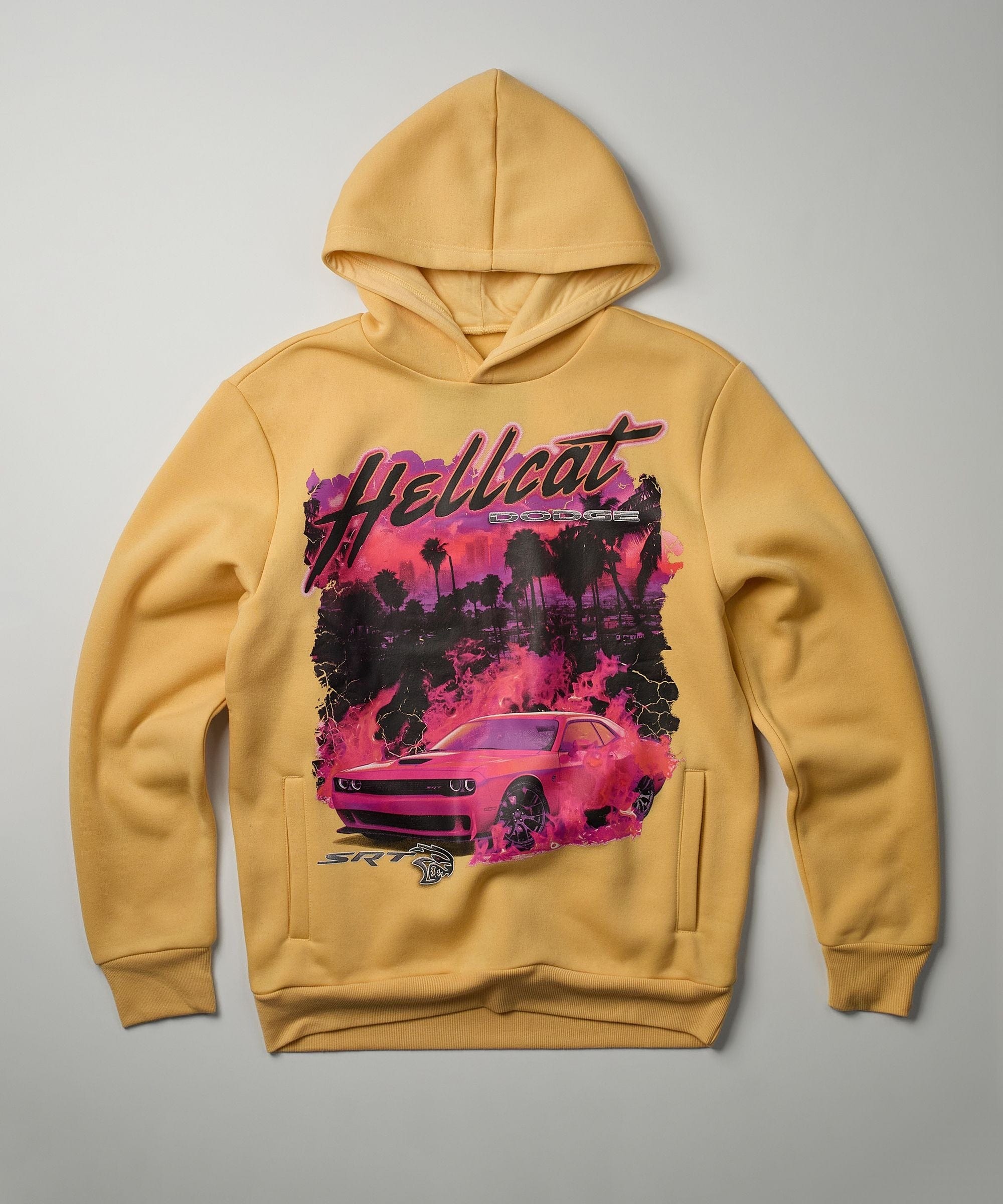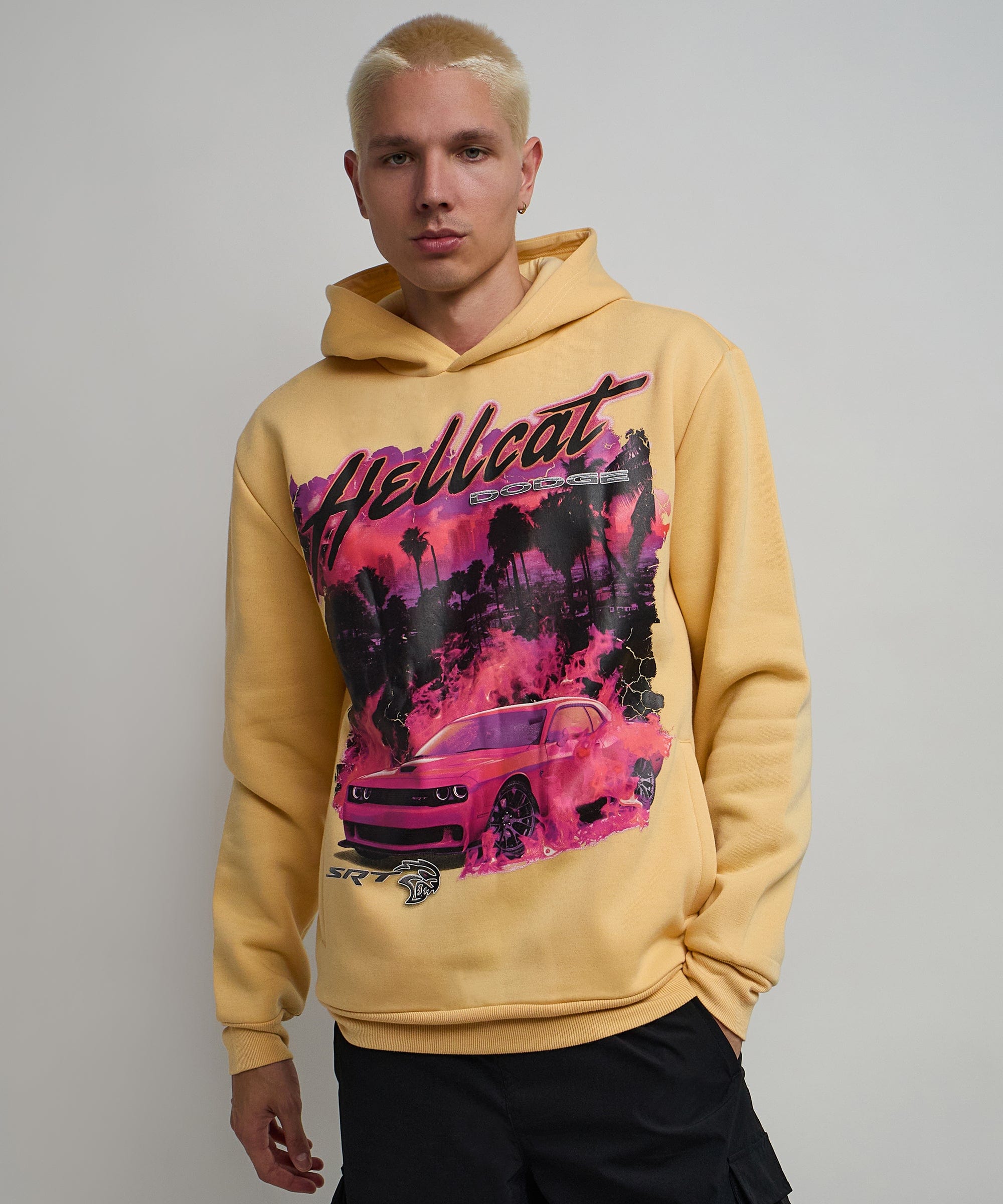 Dodge Hellcat Graphic Print Hoodie - Khaki