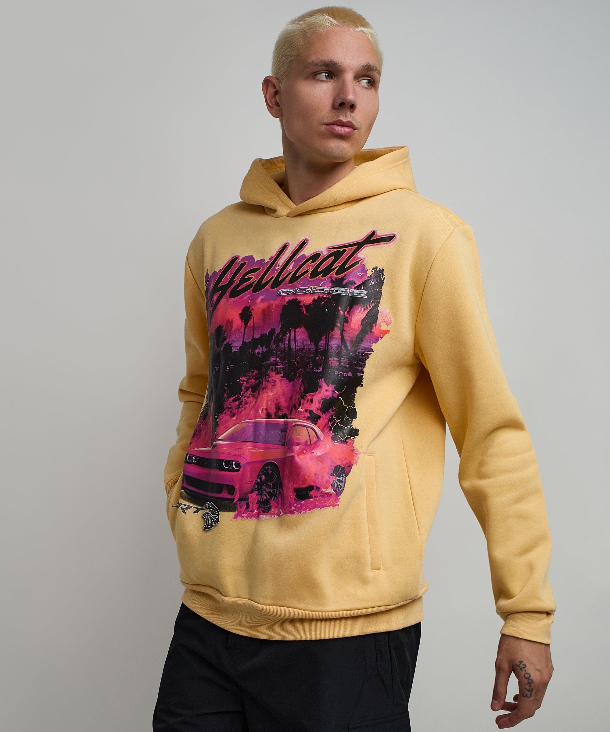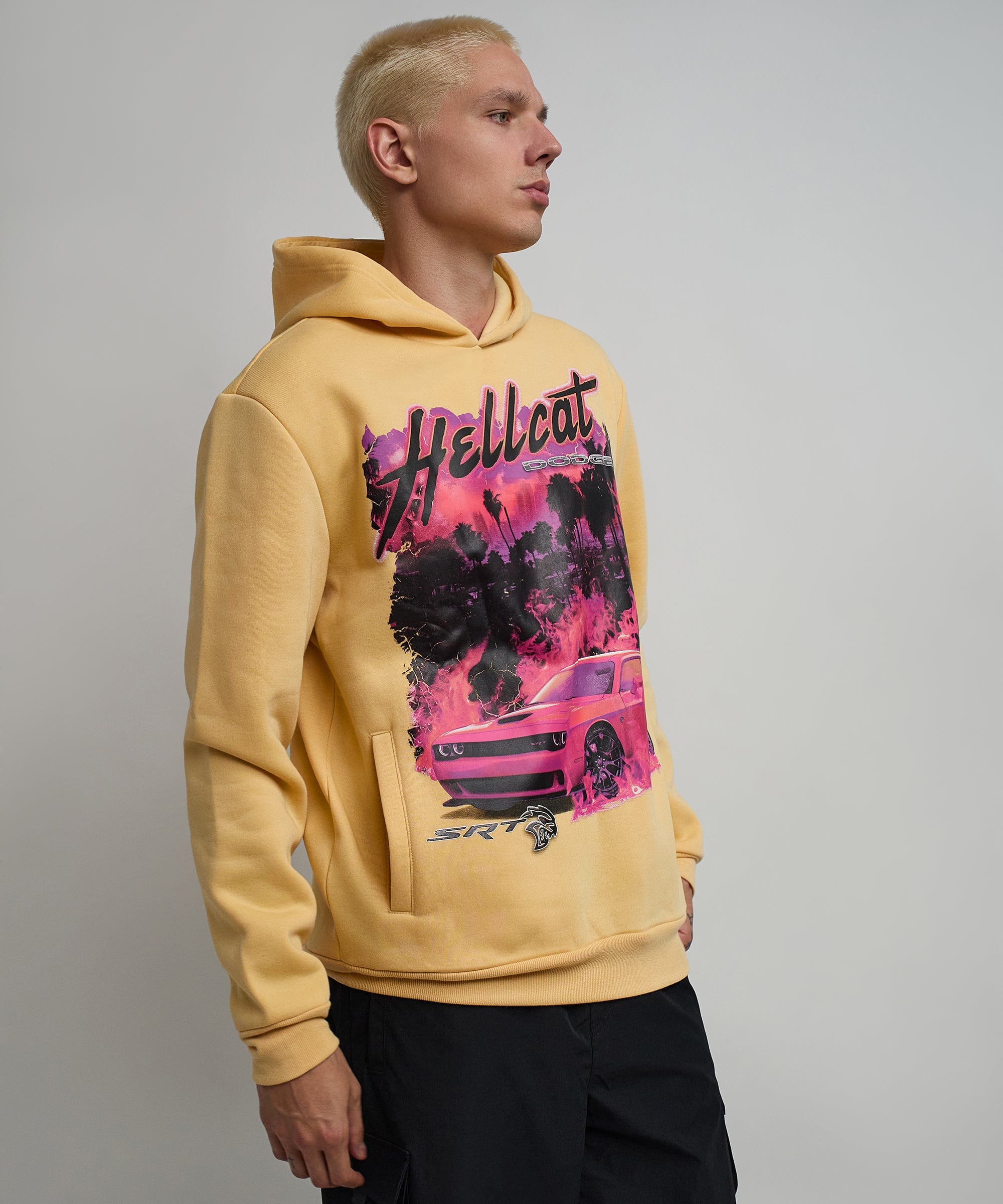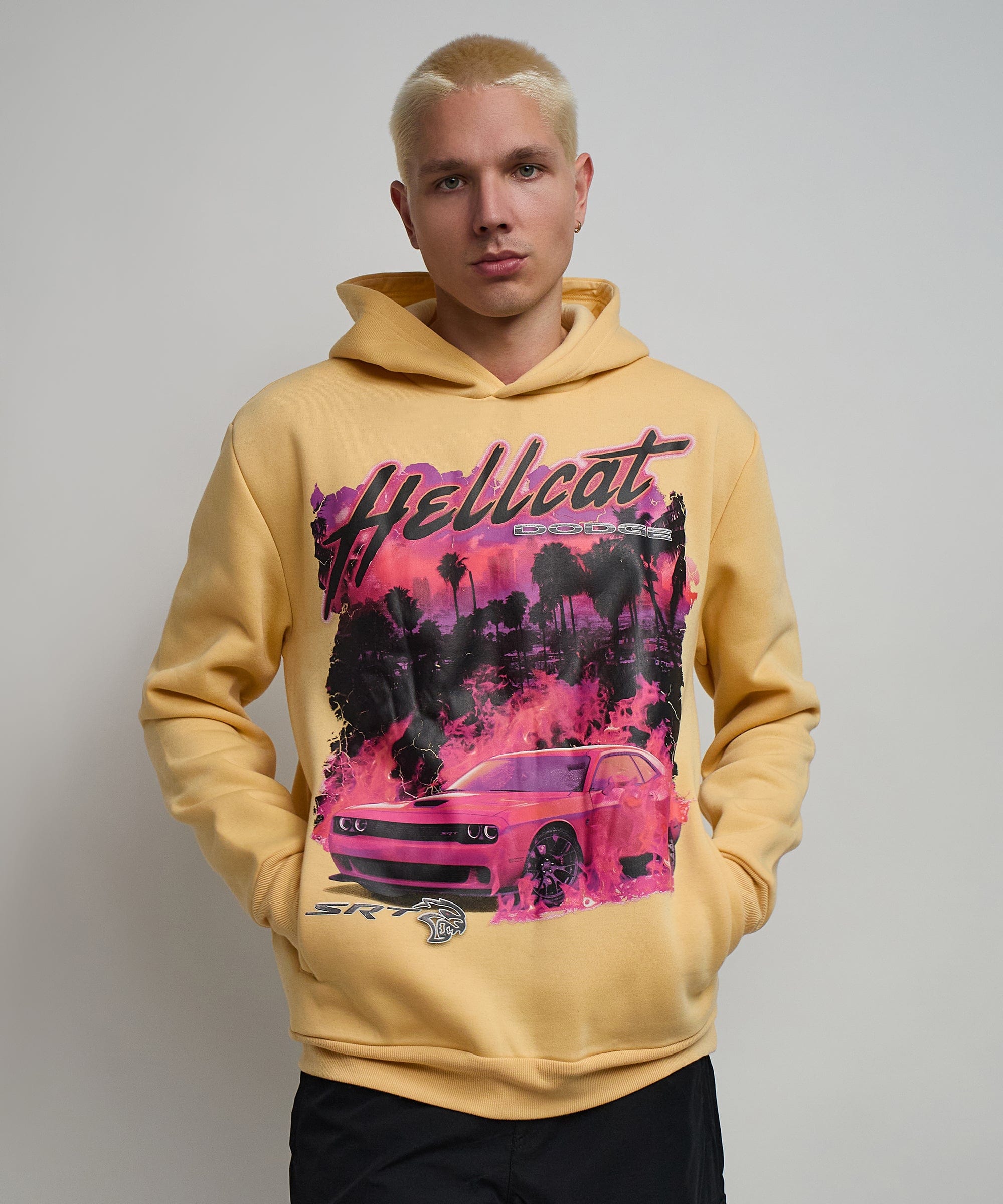 Dodge Hellcat Graphic Print Hoodie - Khaki