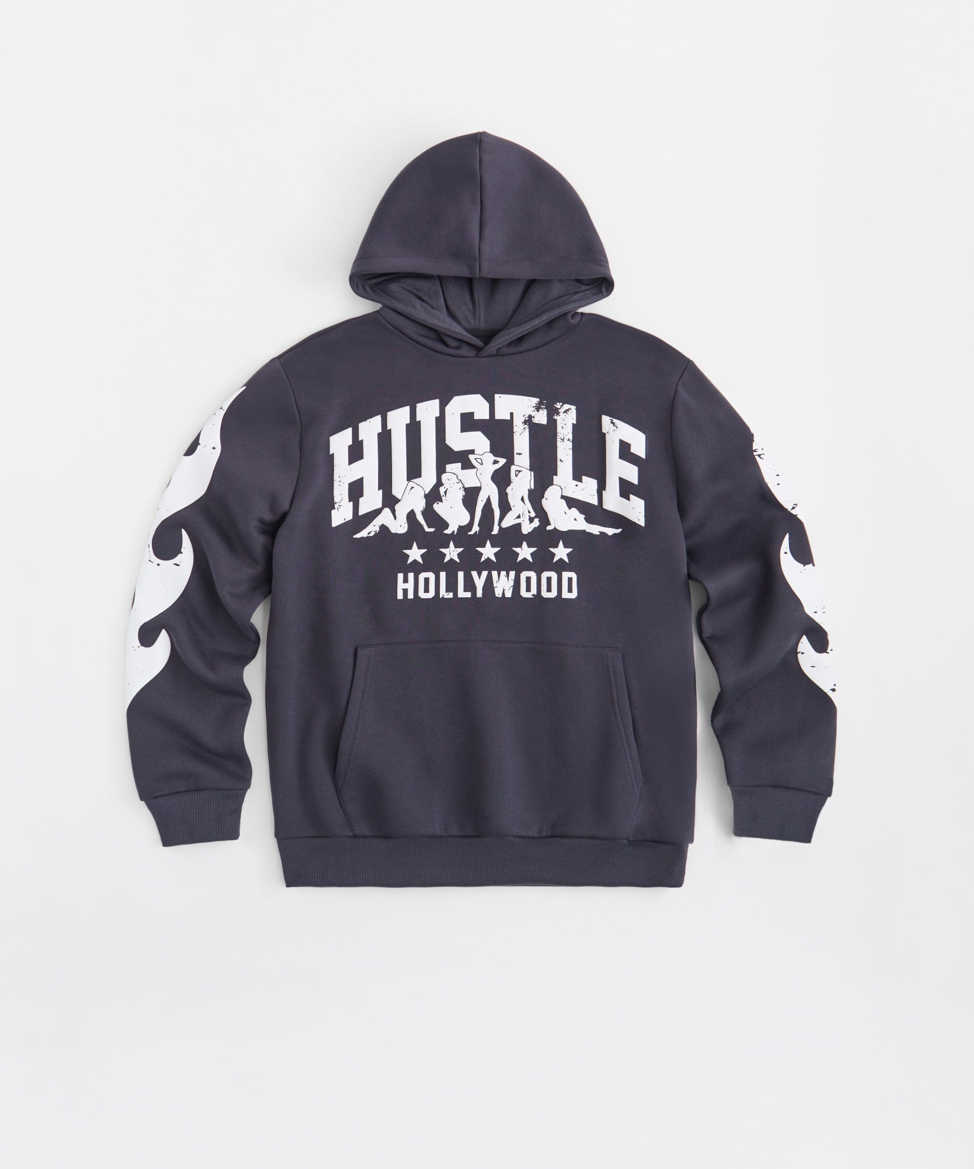 To measure the length of tee shirts, crew necks, and hoodies, measure the shoulder seam at the connecting point of the collar/hood, ending measurement at the bottom hem of the shirt.