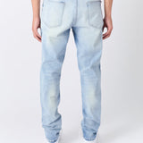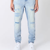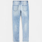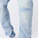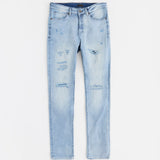Ripped And Repaired Washed Denim Jeans - Light Blue