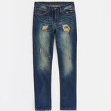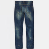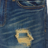 Indigo Washed Tint Rip And Repair Denim Pants - Dark Blue