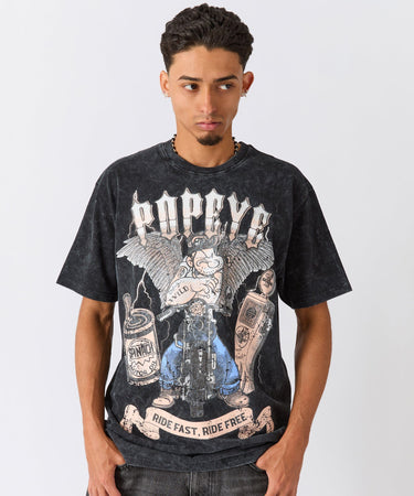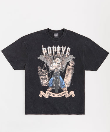 Popeye Ride Fast Short Sleeve Tee - Washed Black
