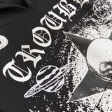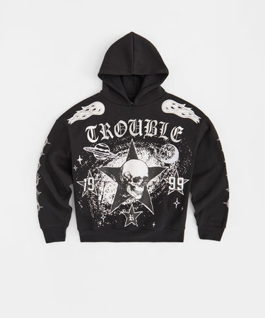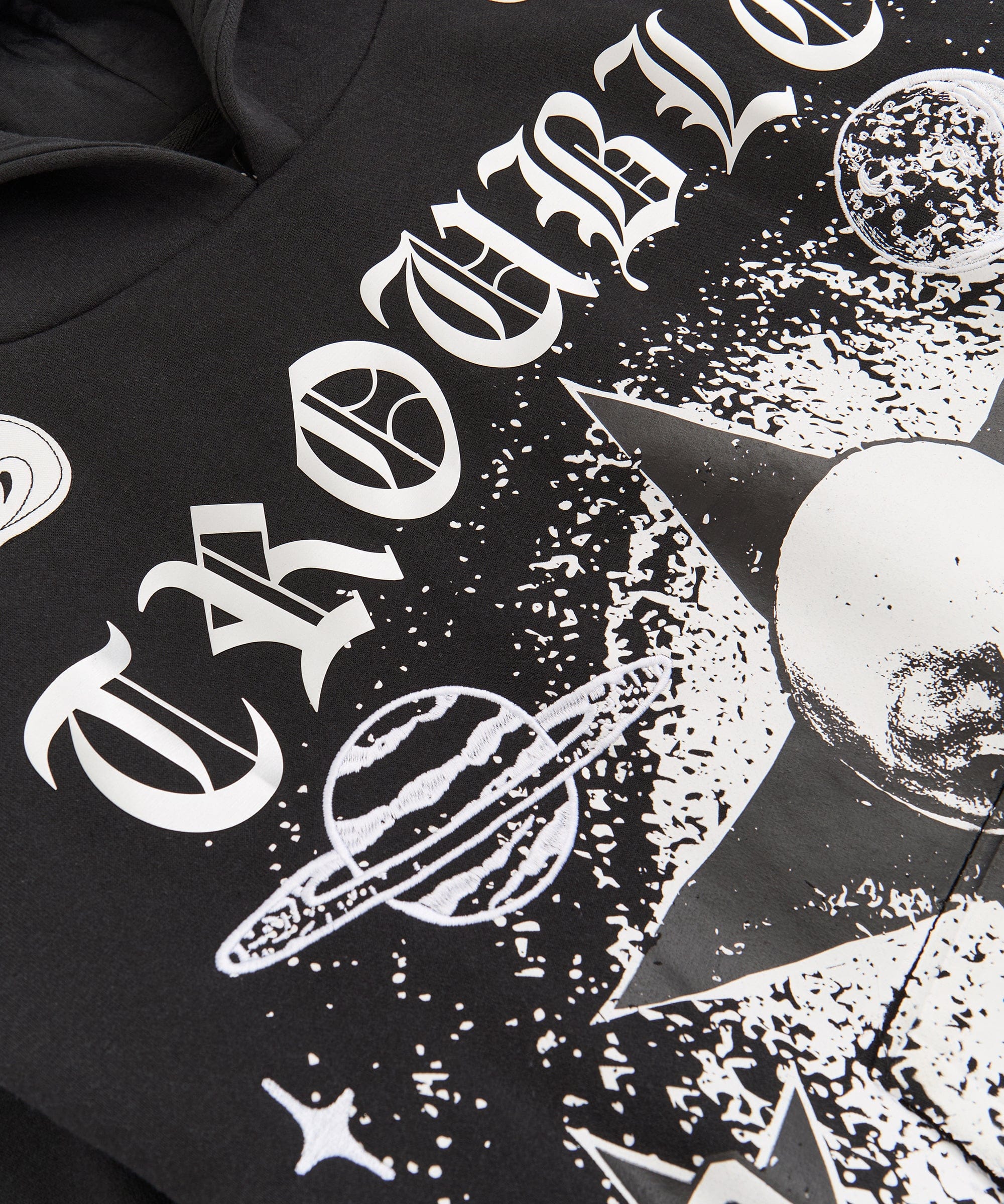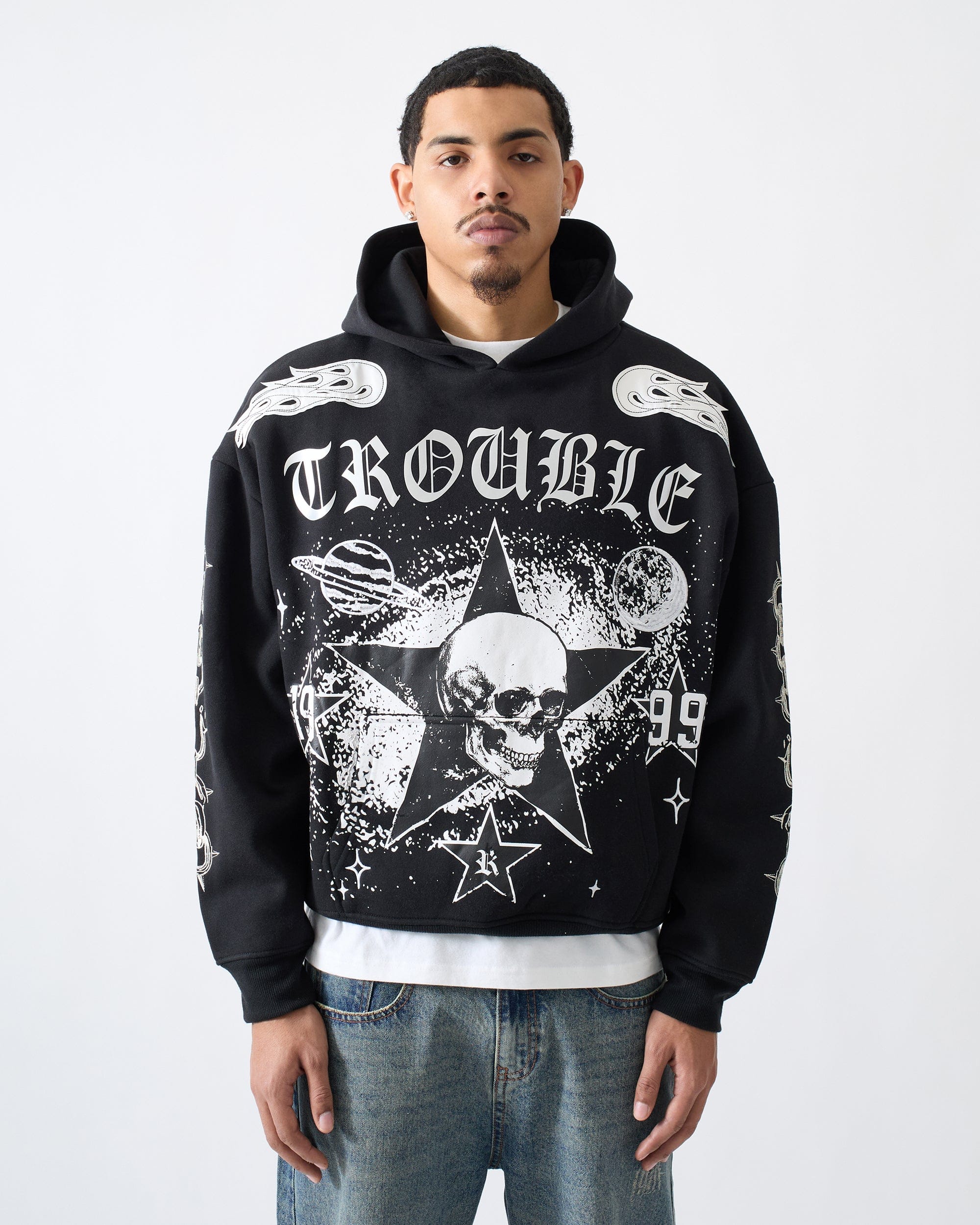 To measure the length of tee shirts, crew necks, and hoodies, measure the shoulder seam at the connecting point of the collar/hood, ending measurement at the bottom hem of the shirt.