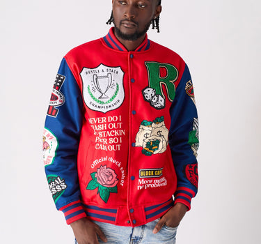 Born Free Chenille Patched Varsity Jacket - Navy $39.99 $99.00
