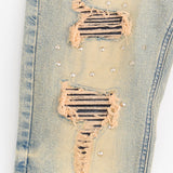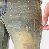 Studded Distress Denim Jeans - Blue