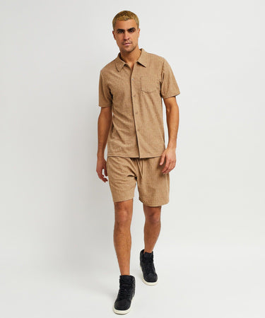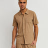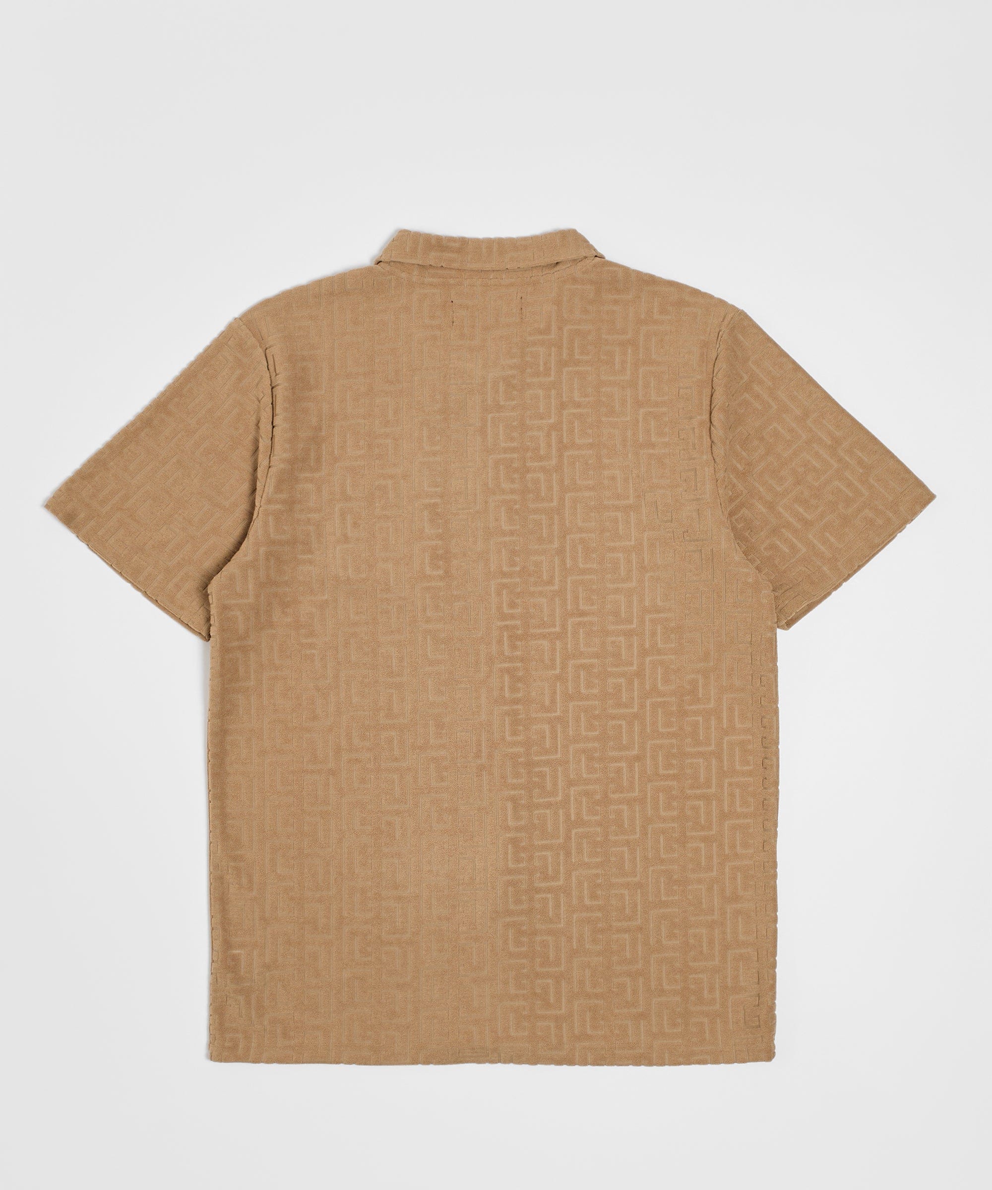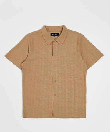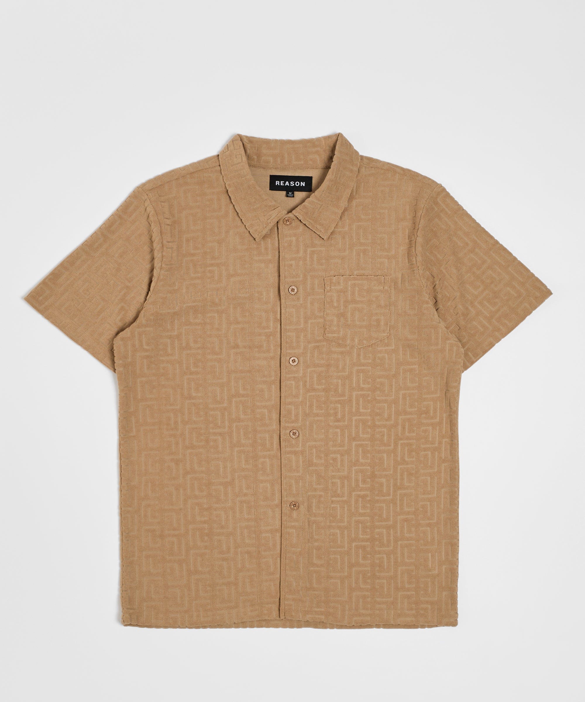 Towel Short Sleeve Embossed Pattern Button Down Shirt - Rust