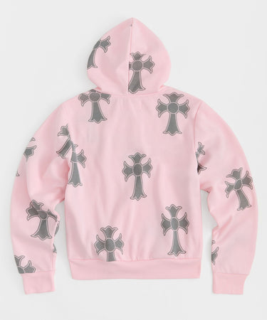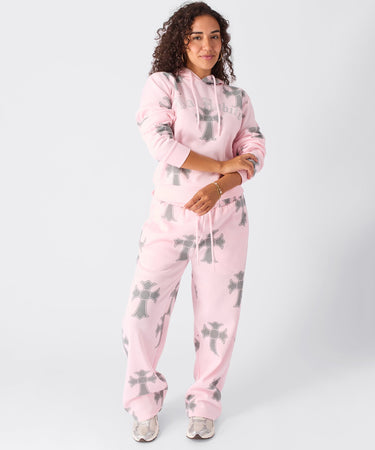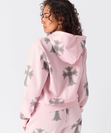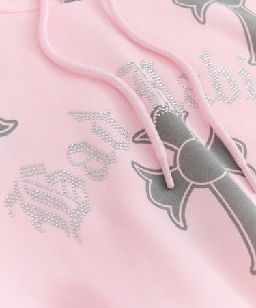 Women Bad Habits Rhinestones Cropped Hoodie - Pink