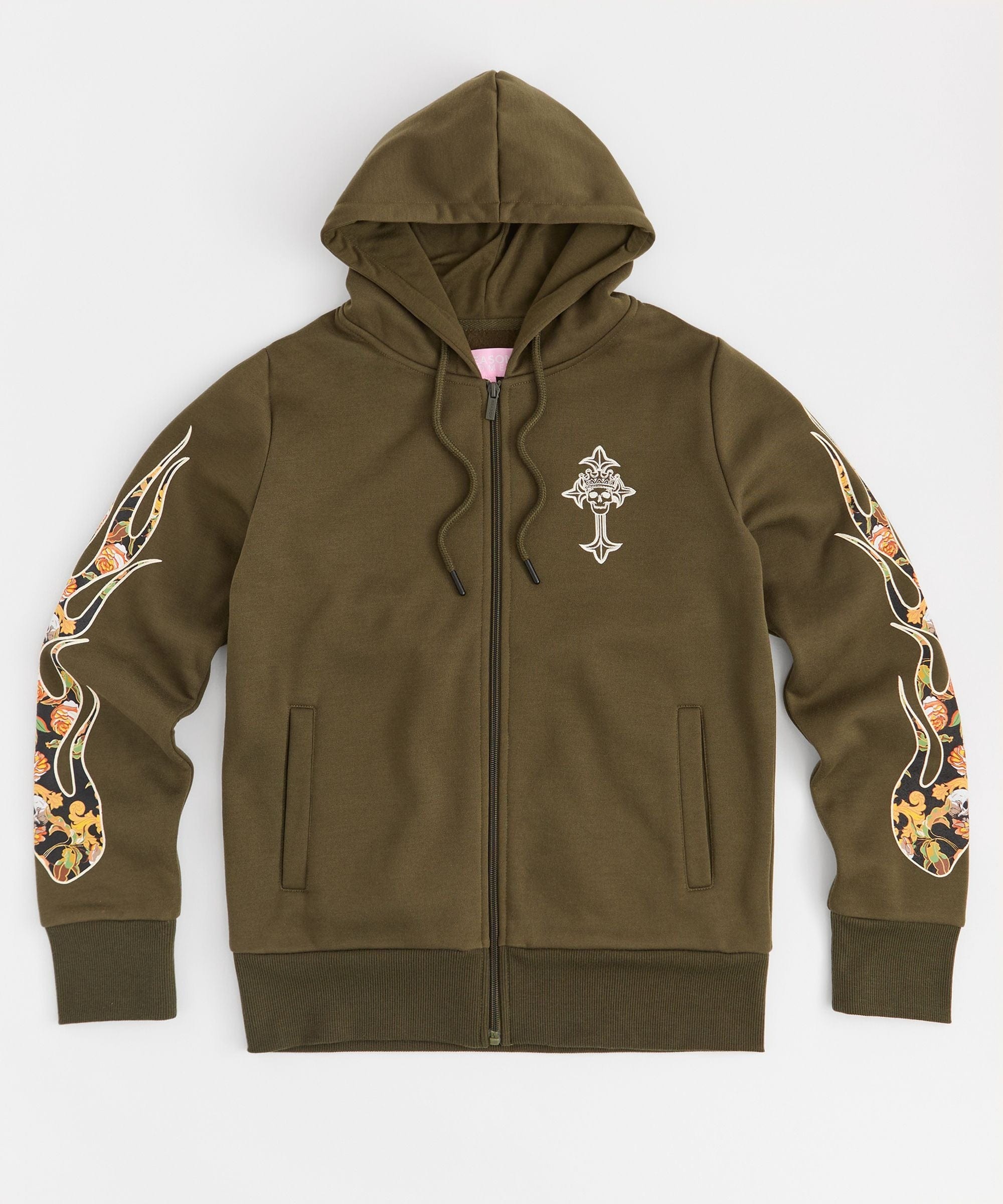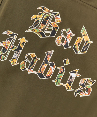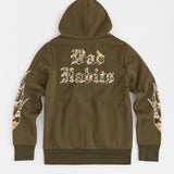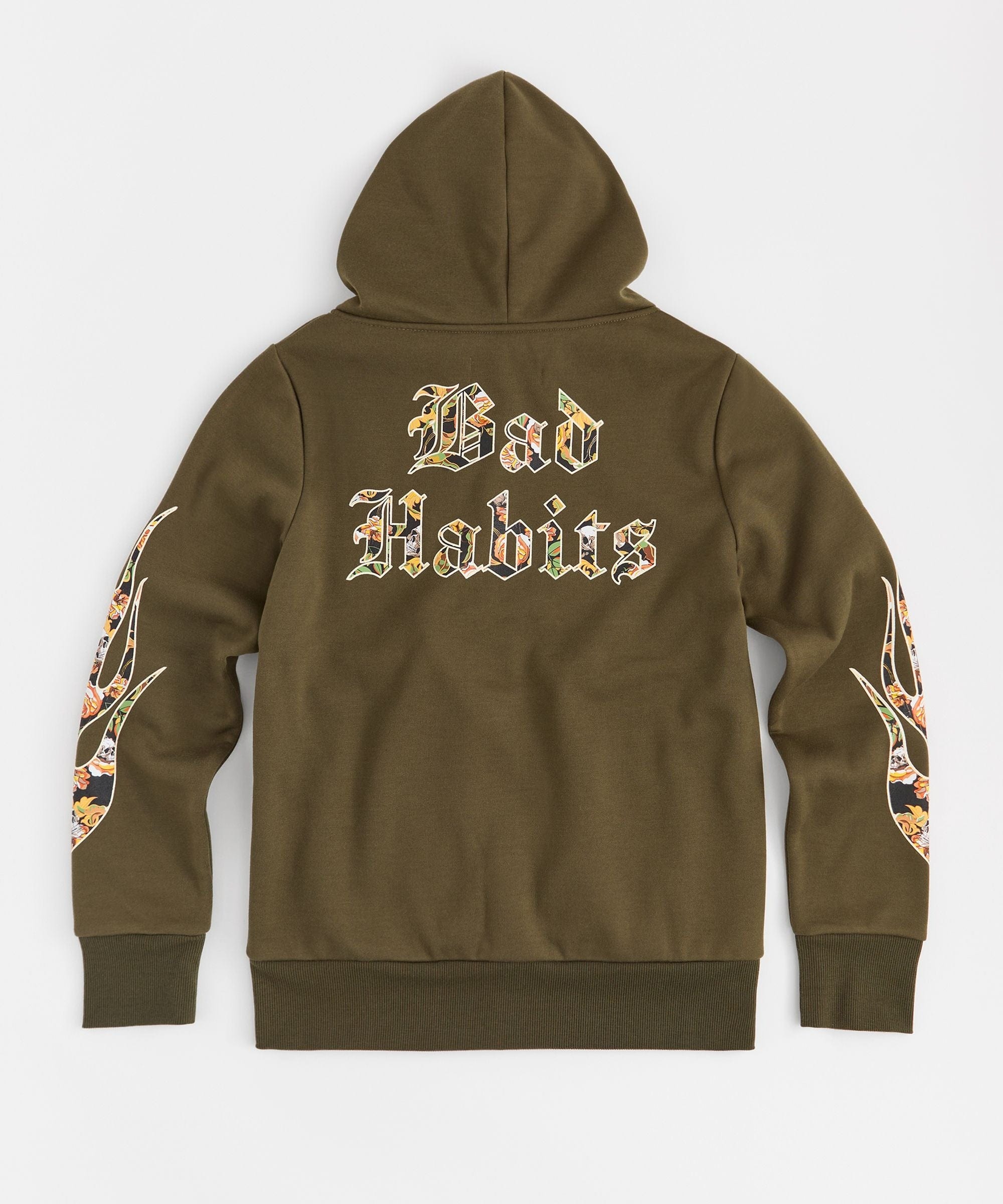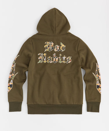 Women Olive Bad Habits Flame Hoodie - Olive Green