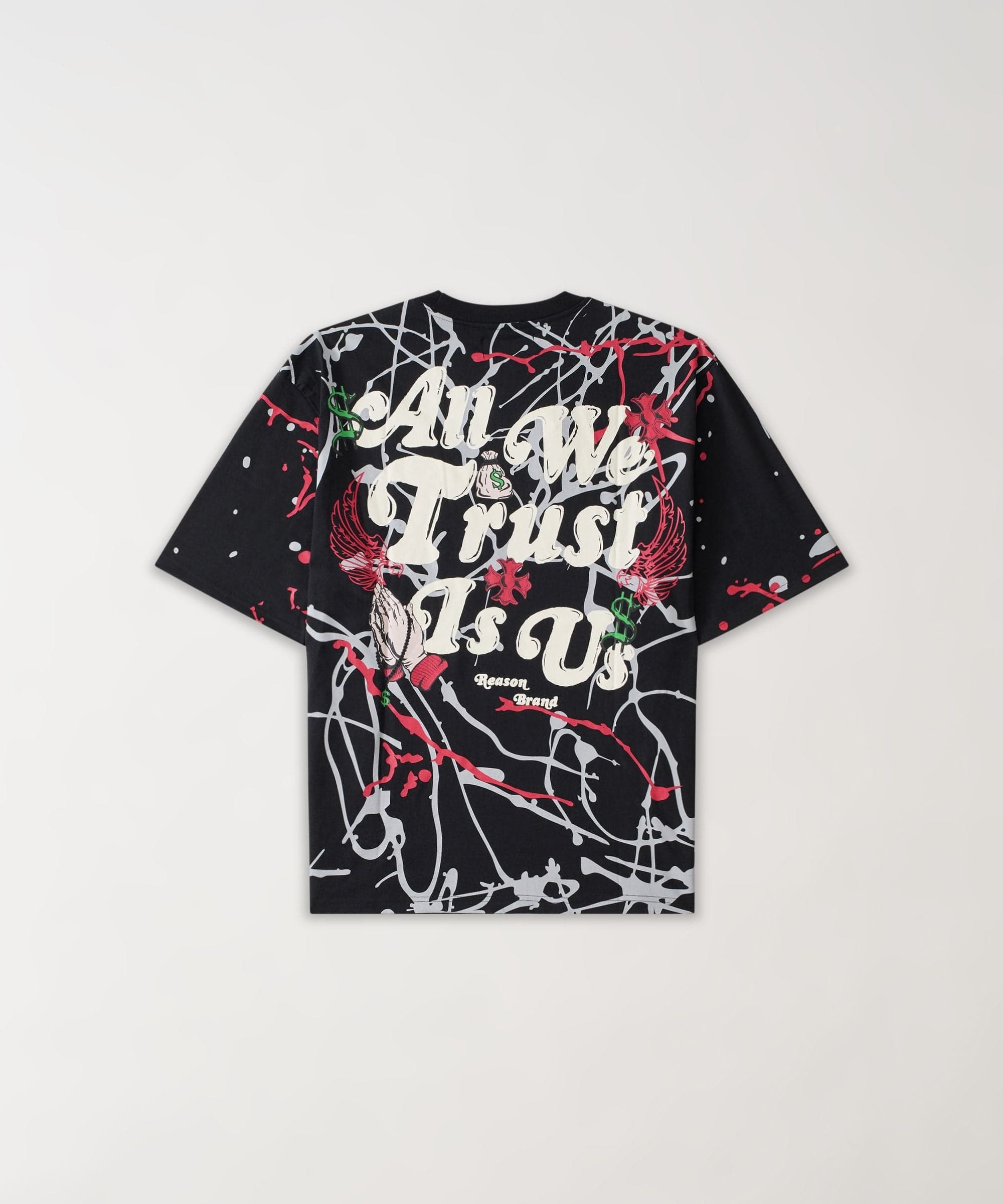 All We Trust Is Us Painted Back Print Short Sleeve Tee - Black