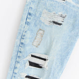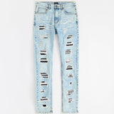 Destroyed Rip and Repair Denim Jeans - Light Blue