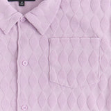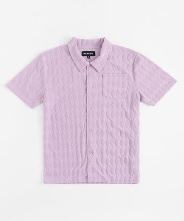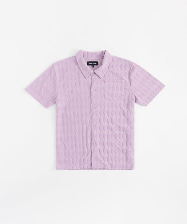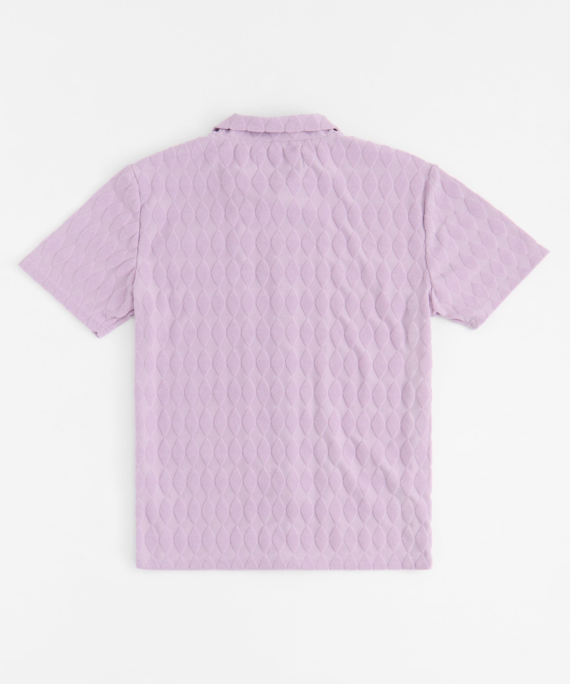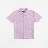 Diamond Plate Towel Color Blocked Short Sleeve Button Down Shirt - Mauve