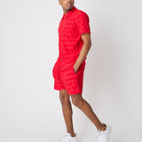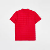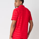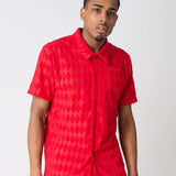 Diamond Plate Towel Color Blocked Short Sleeve Button Down Shirt - Red