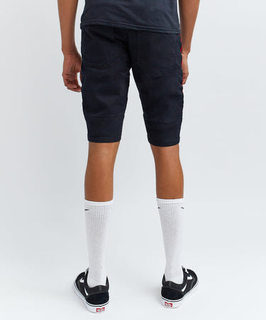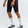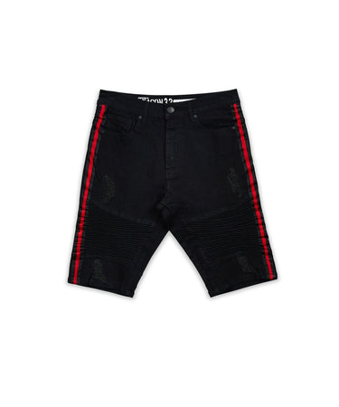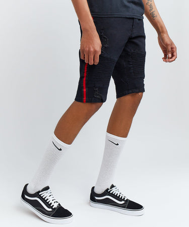 Dunham Side Stripe Black Wash Moto Denim Shorts