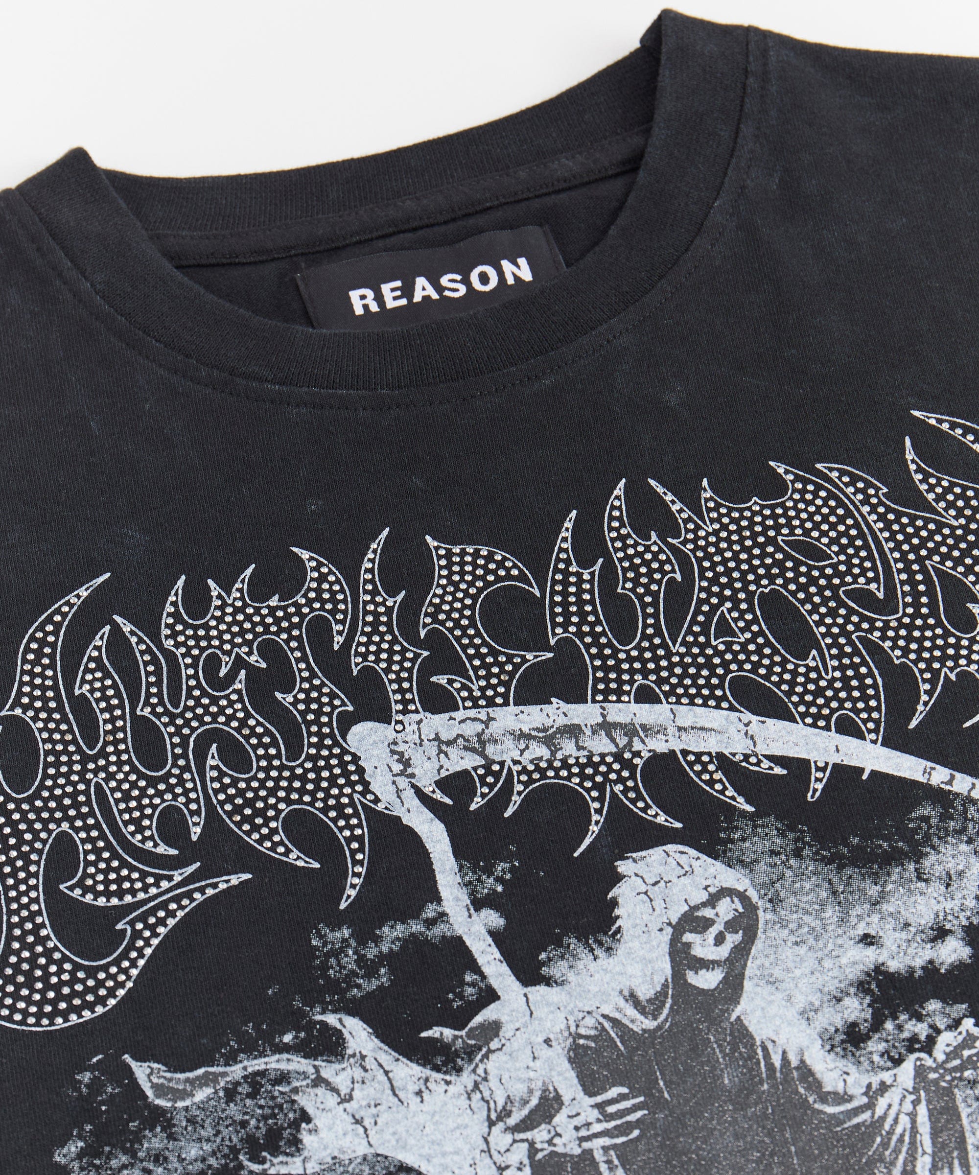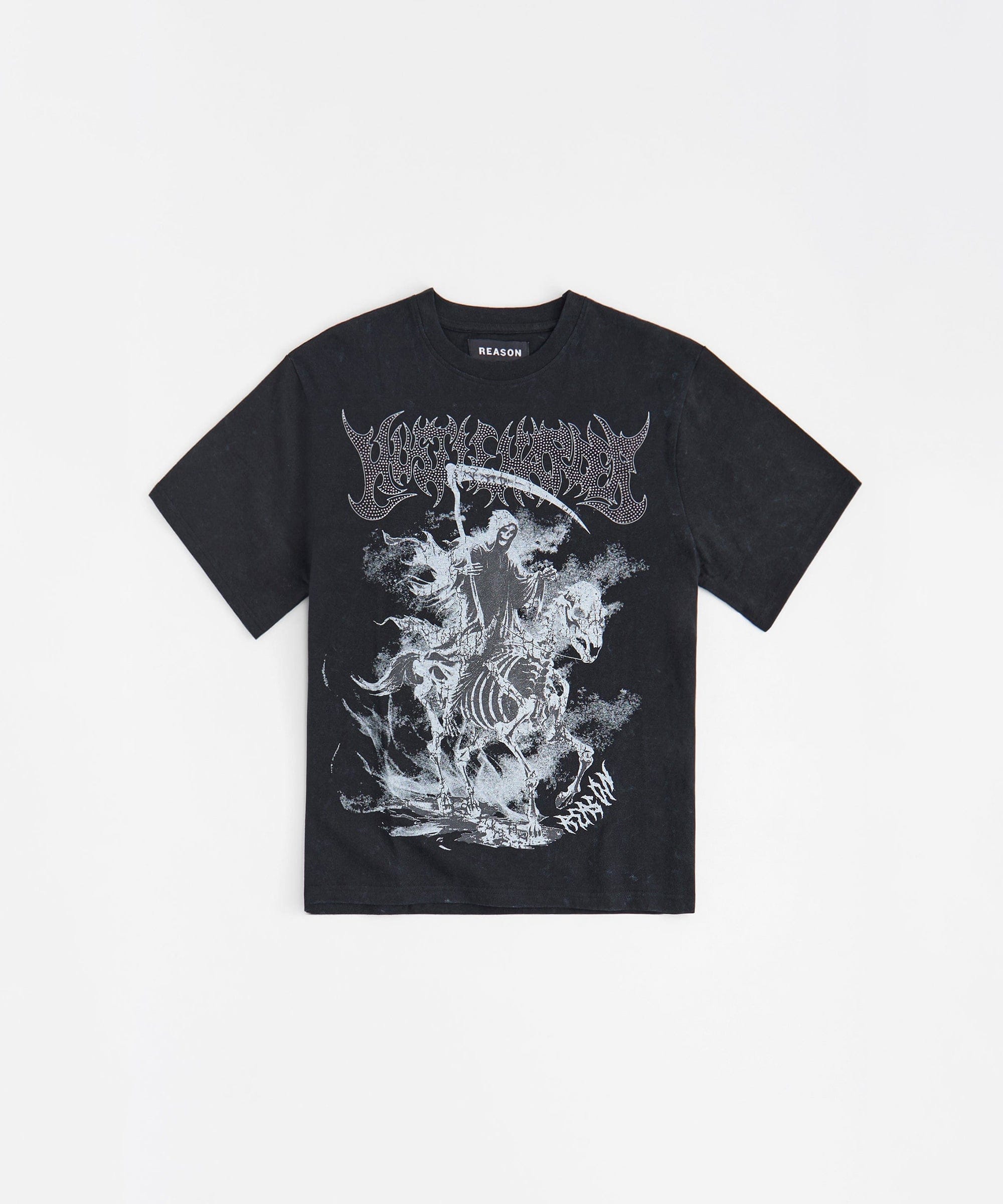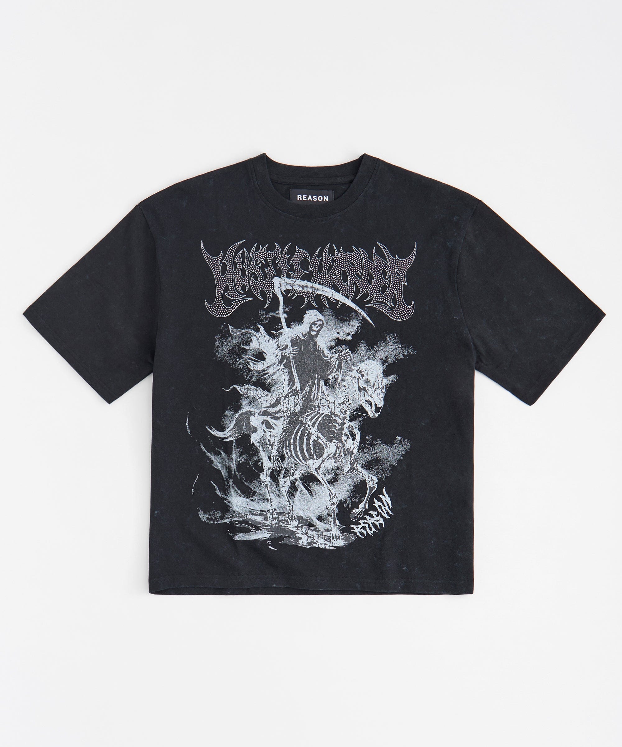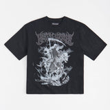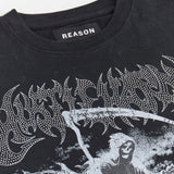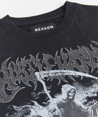 Grim Reaper Rhinestone Washed Short Sleeve Tee - Black