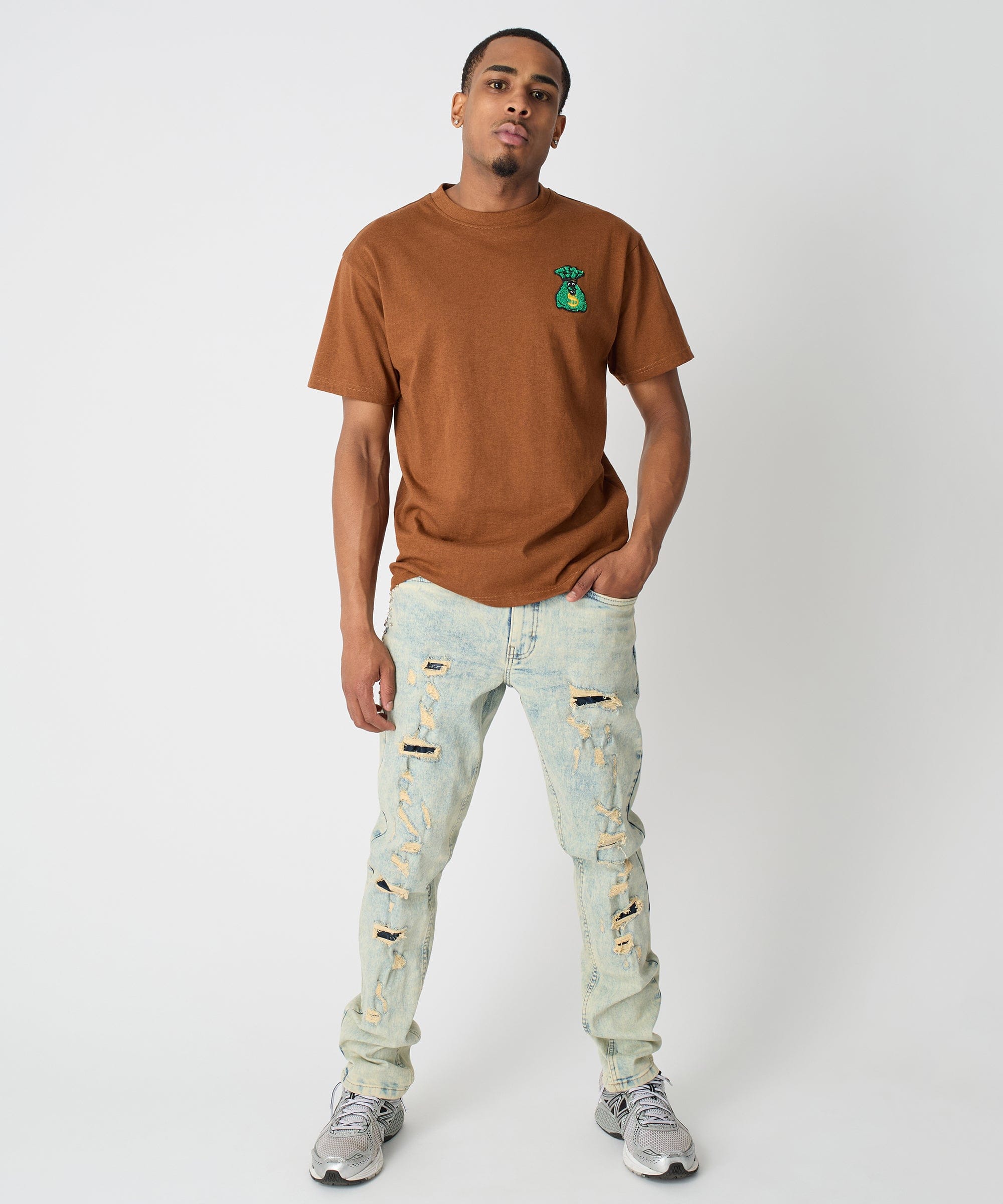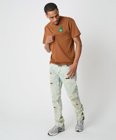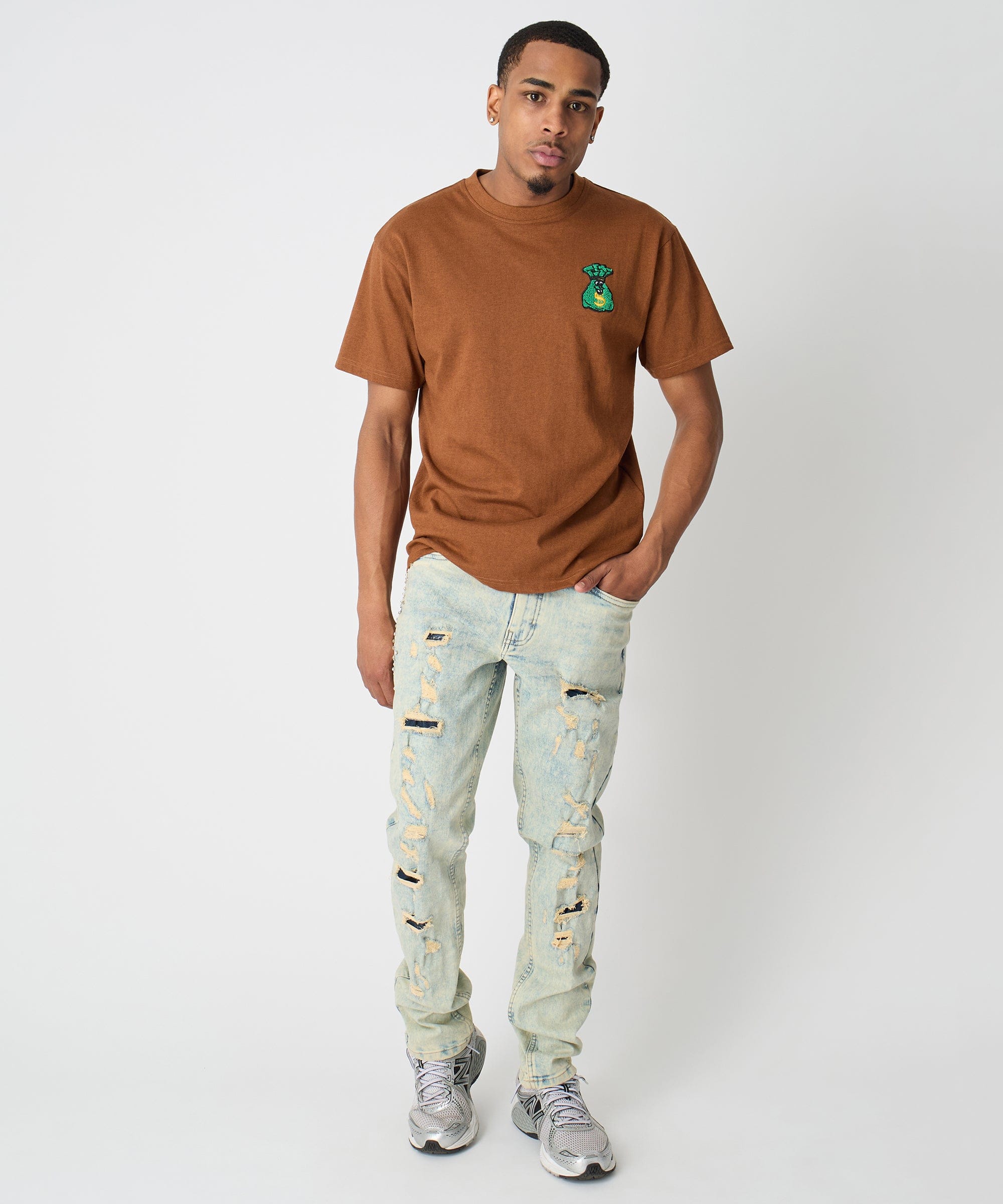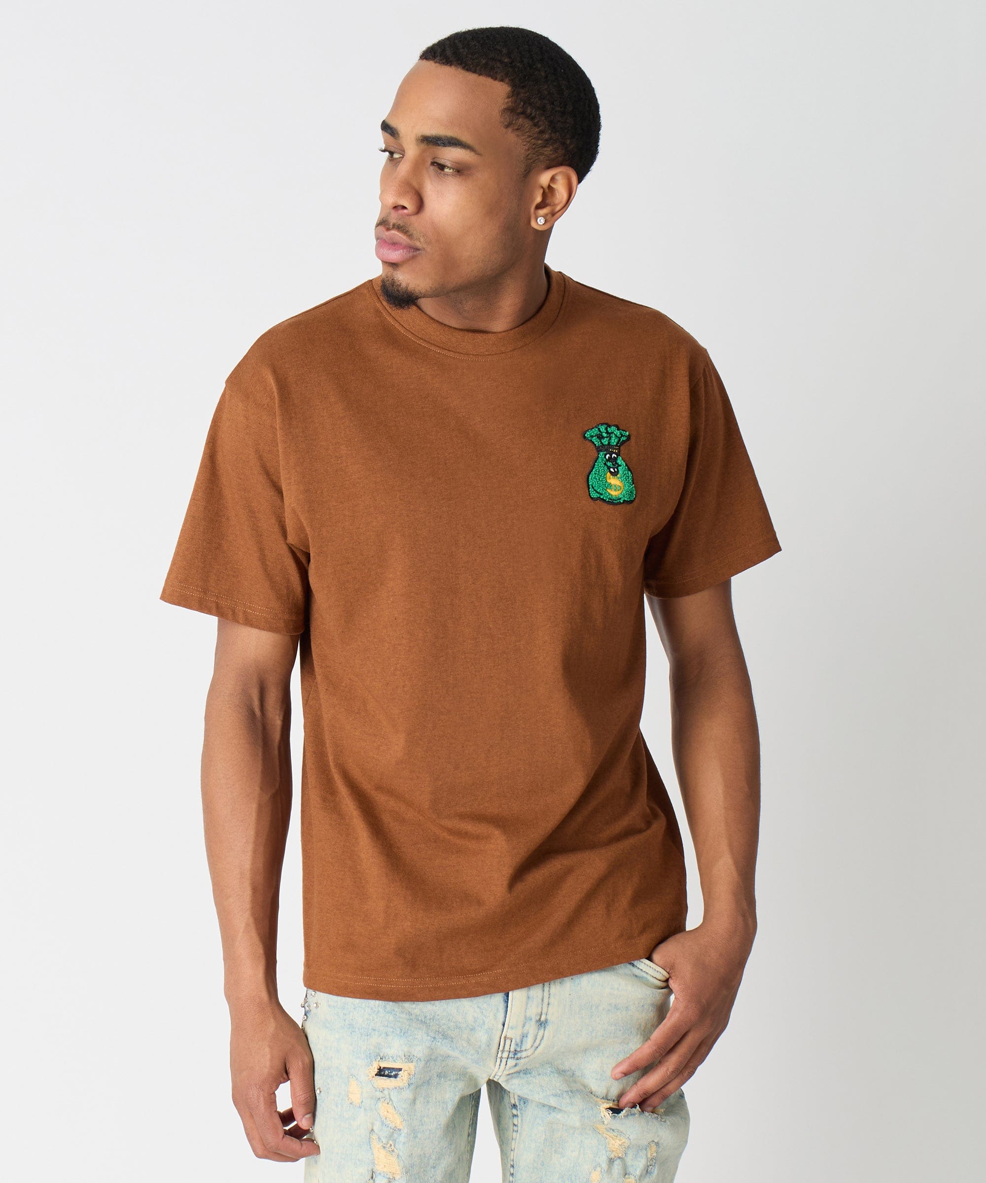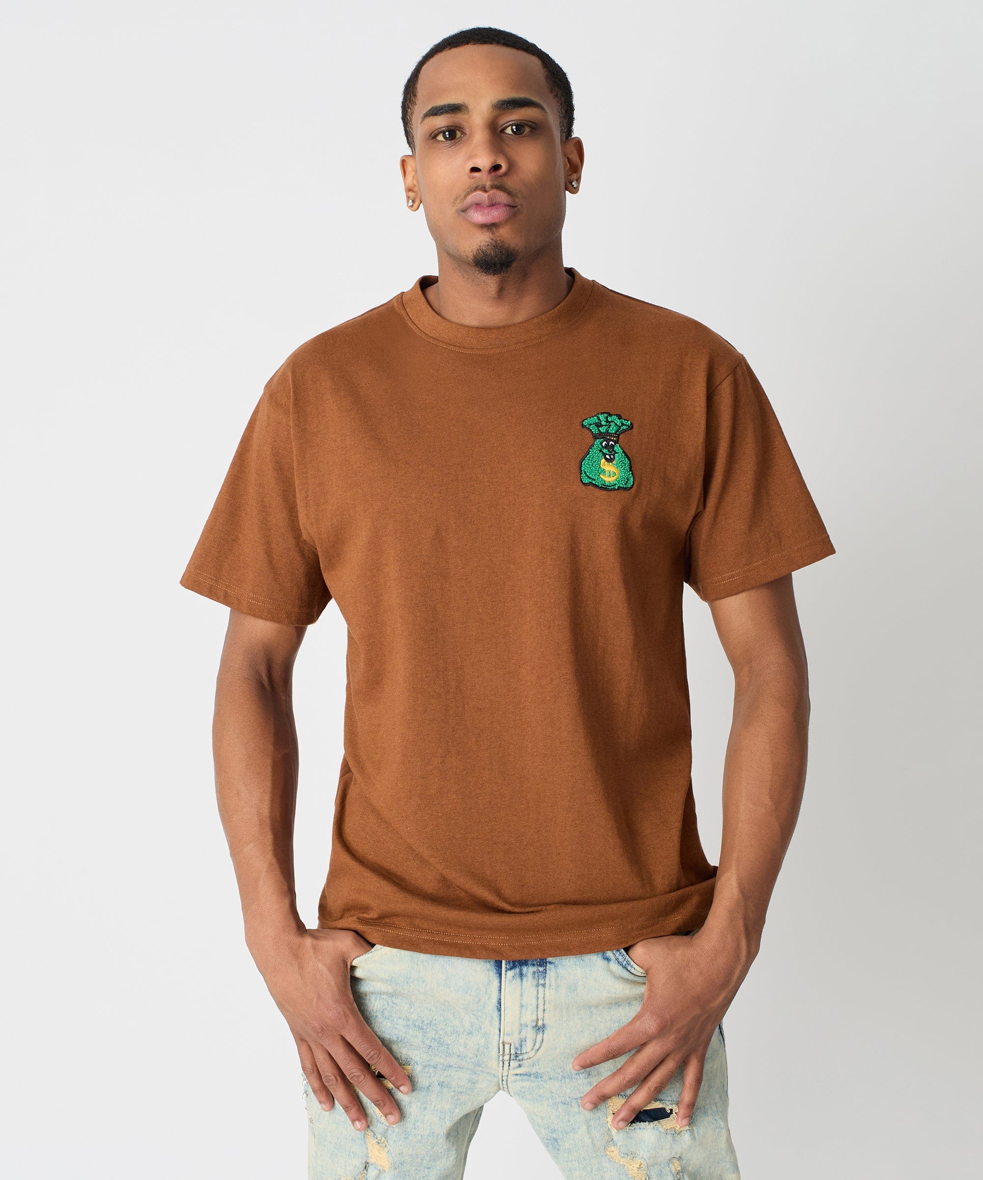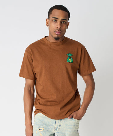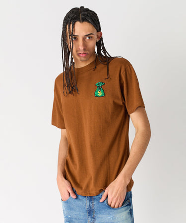 Money Bags Chenille Patch Short Sleeve Tee - Khaki