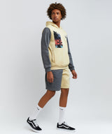 To measure the length of tee shirts, crew necks, and hoodies, measure the shoulder seam at the connecting point of the collar/hood, ending measurement at the bottom hem of the shirt.