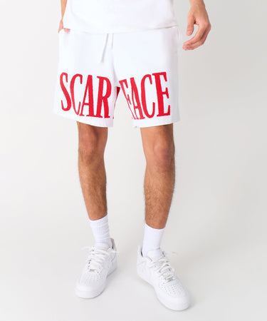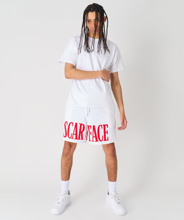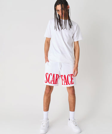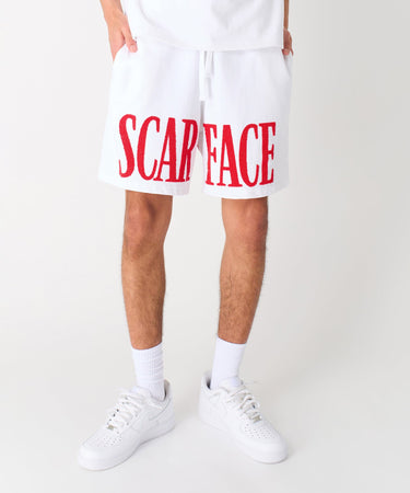 Scarface Fleece Glitter Sugar Print Shorts - White