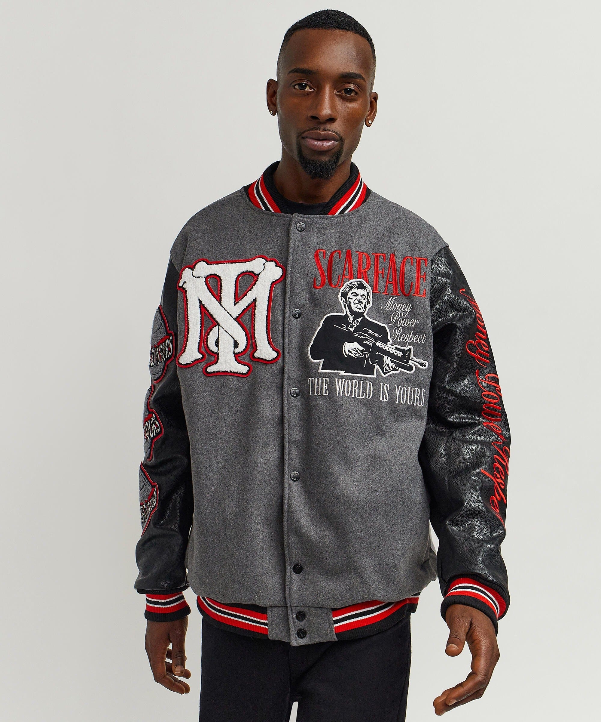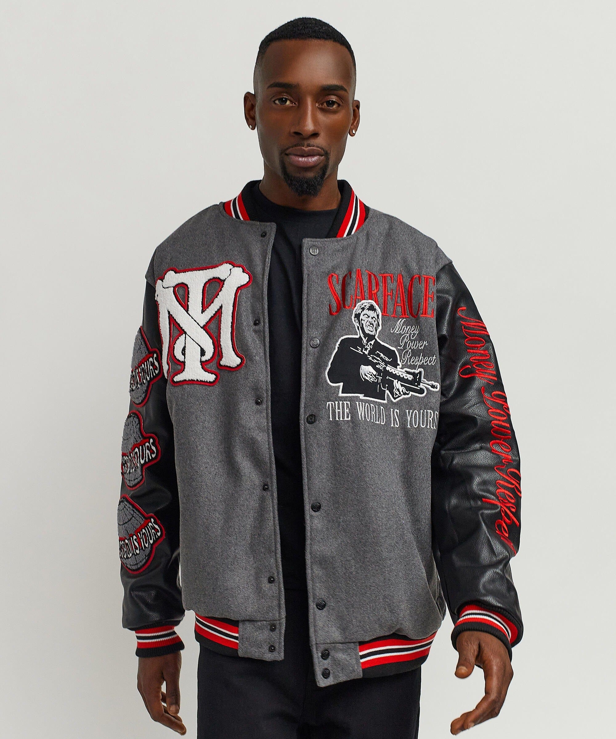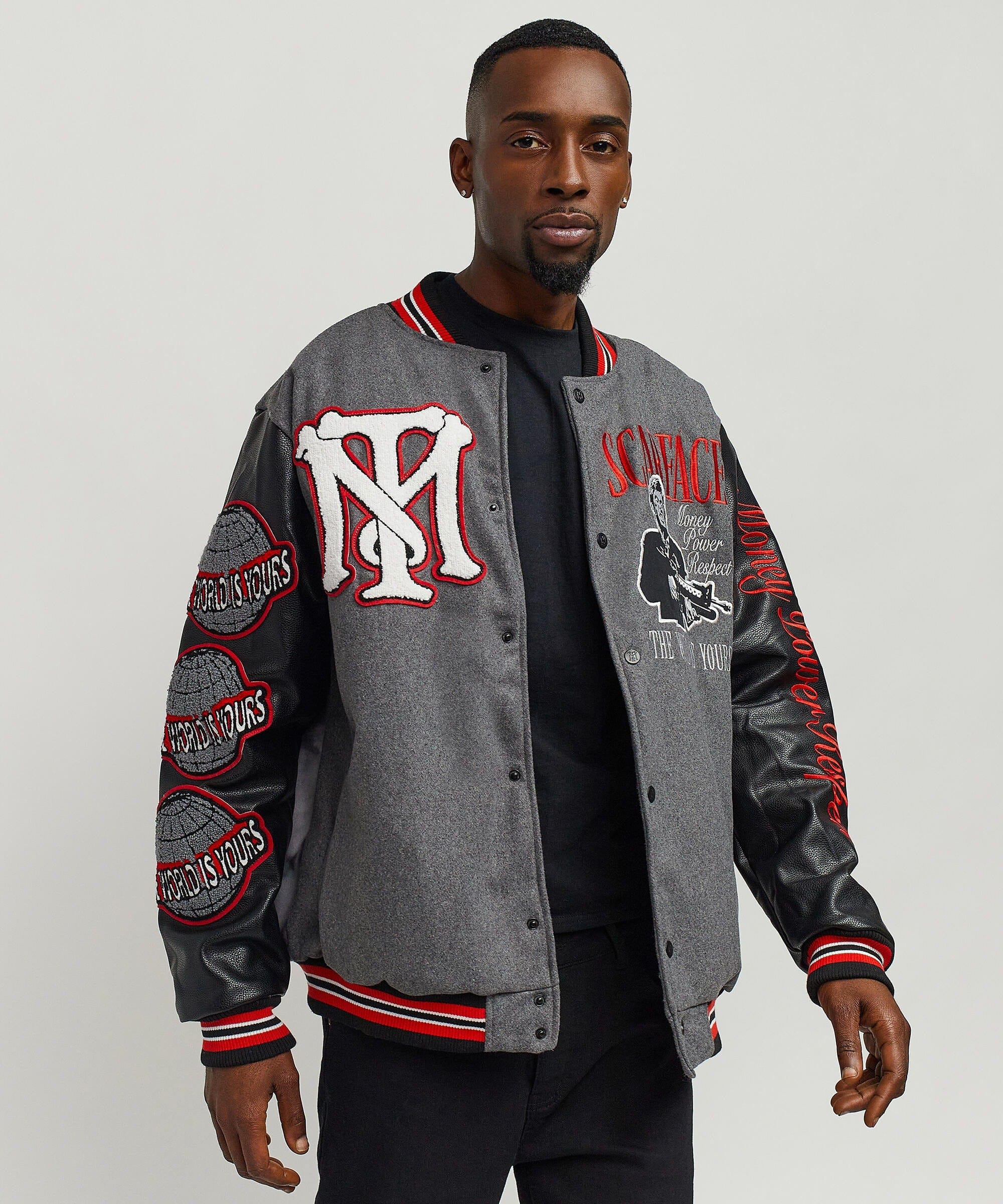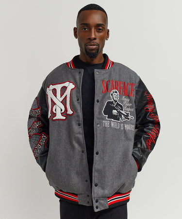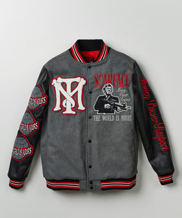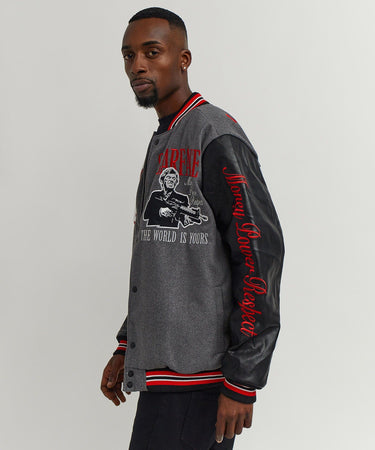 Scarface The World Varsity Jacket PU - Black And Grey