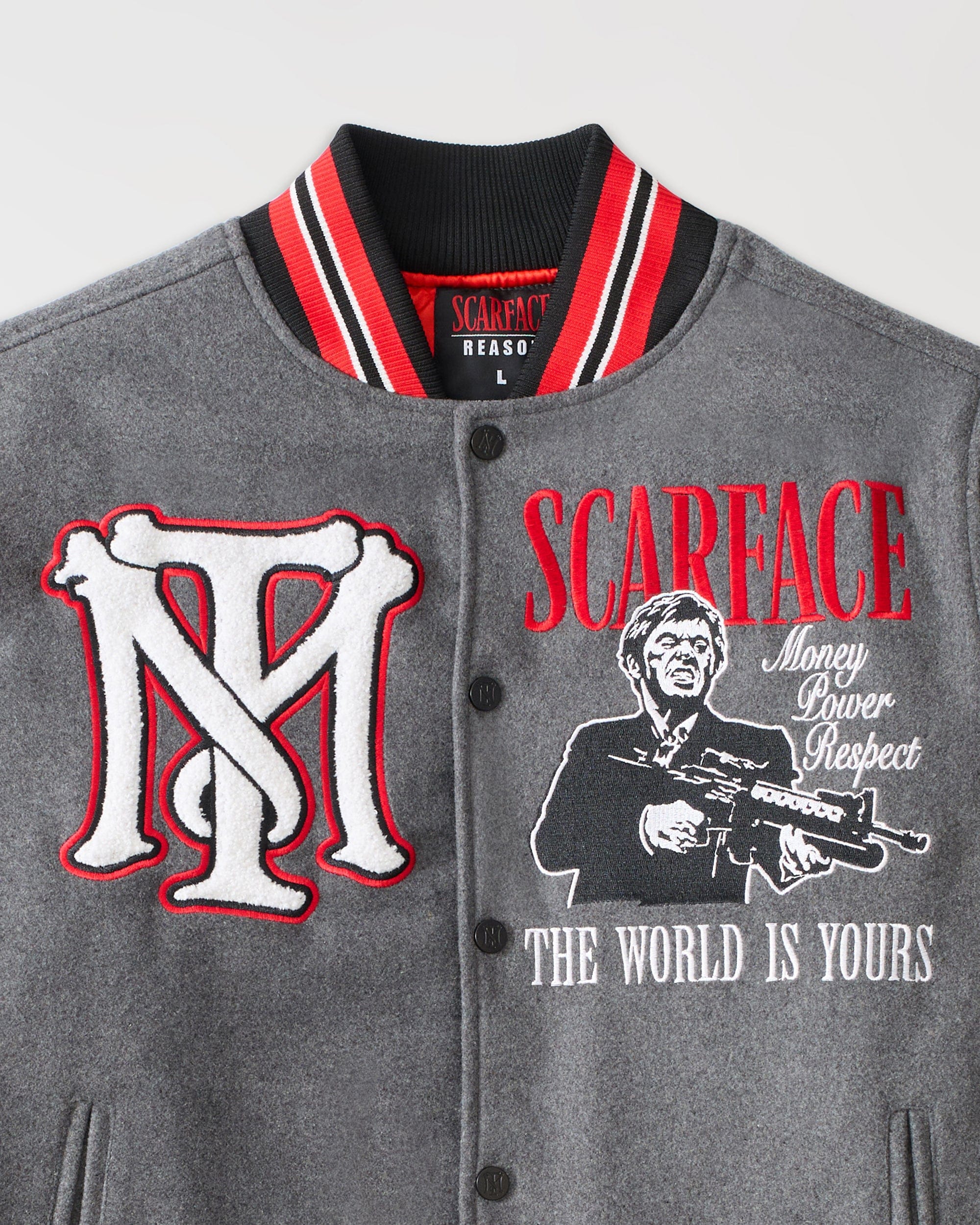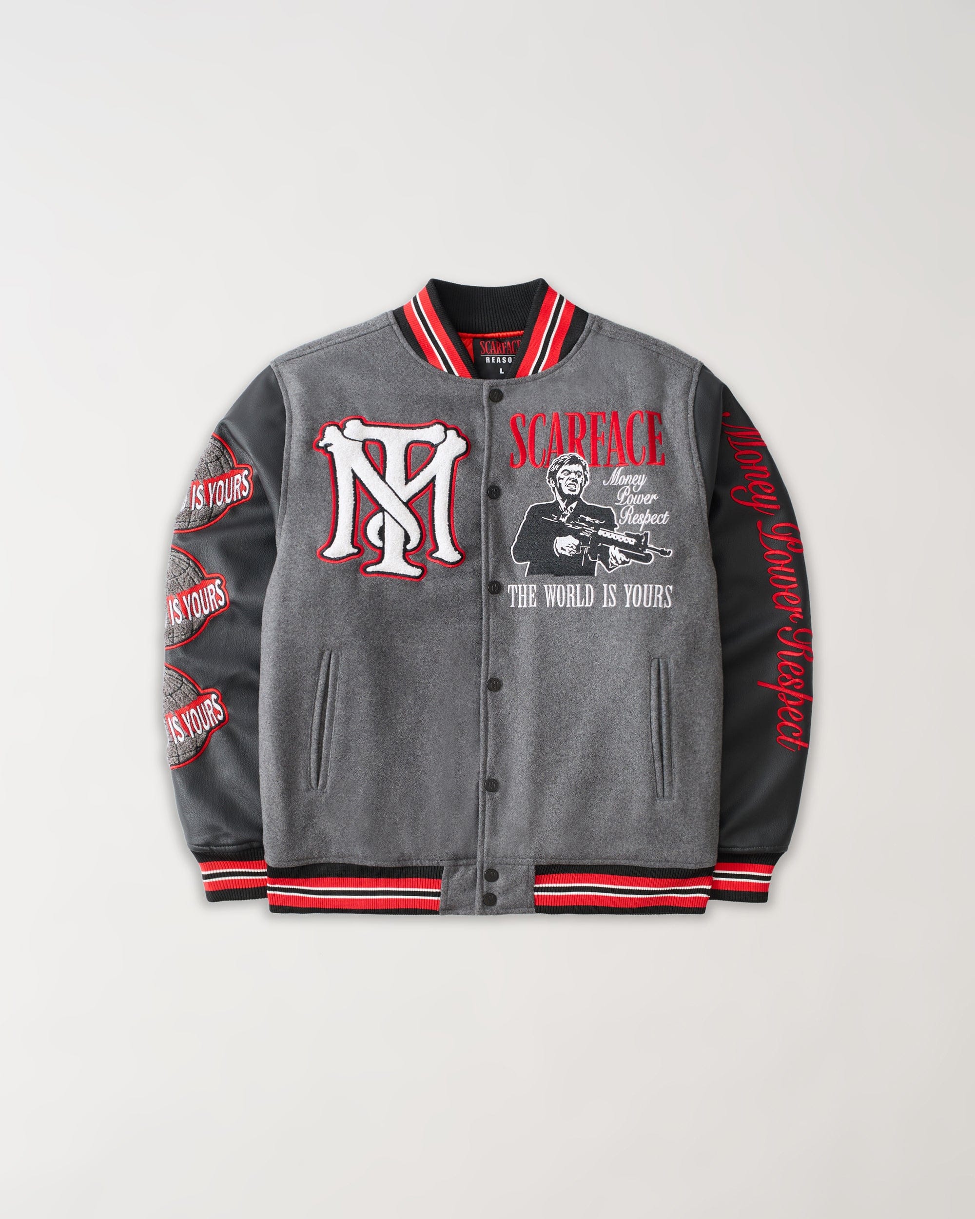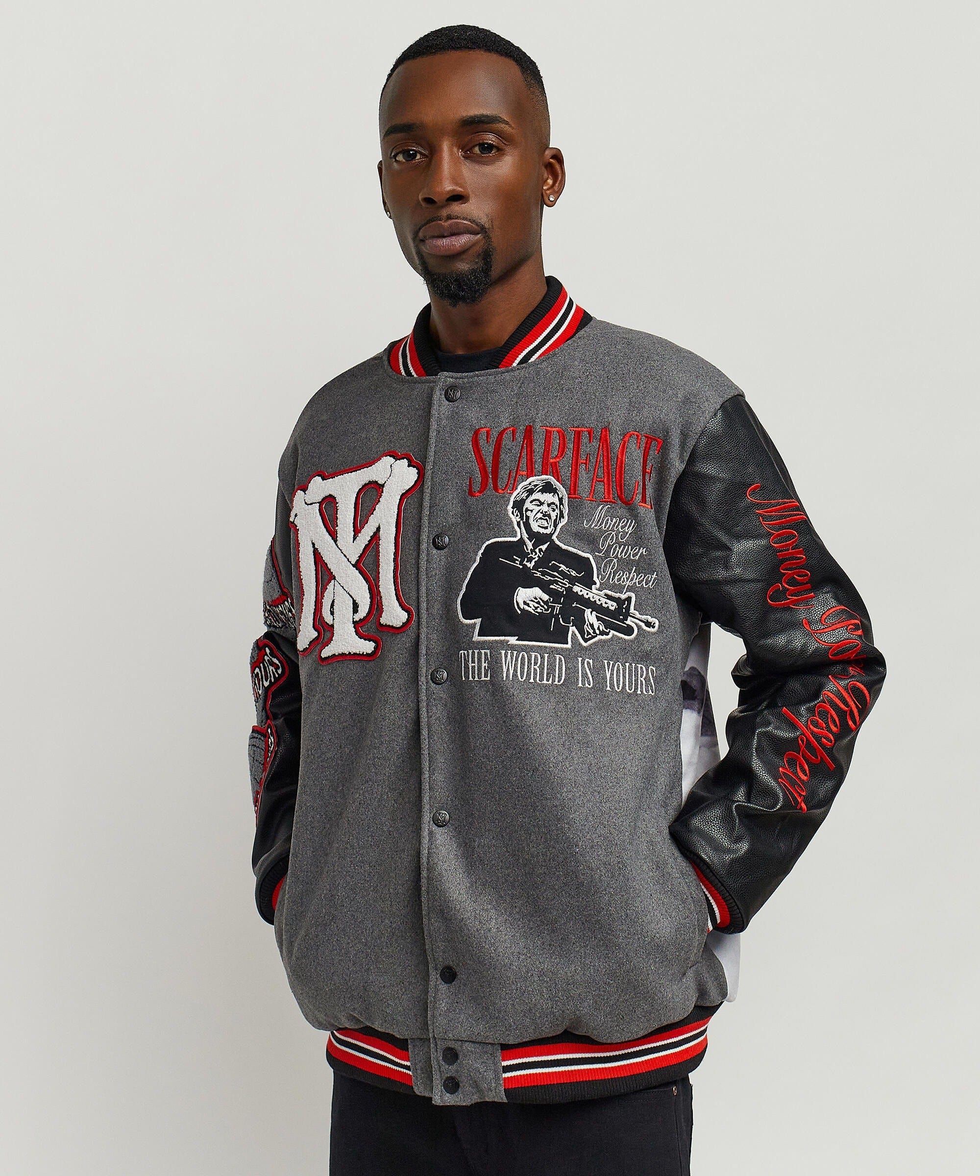 Scarface The World Varsity Jacket PU - Black And Grey