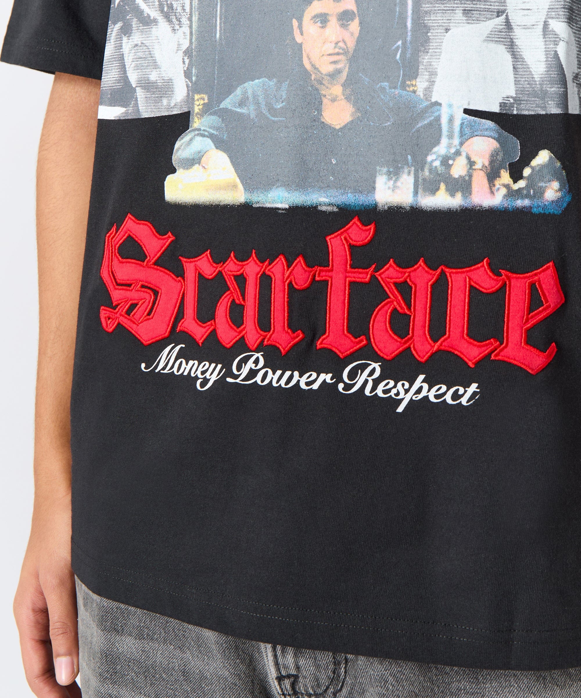 Scarface Money Embroidered Short Sleeve Tee - Black