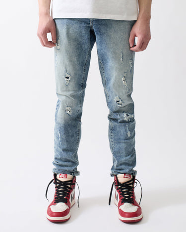 Rip And Repair Light Wash Denim Jeans - Blue