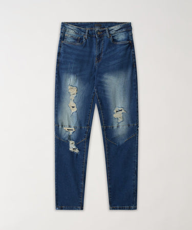Rip And Repair Dark Wash Denim Pants - Blue
