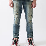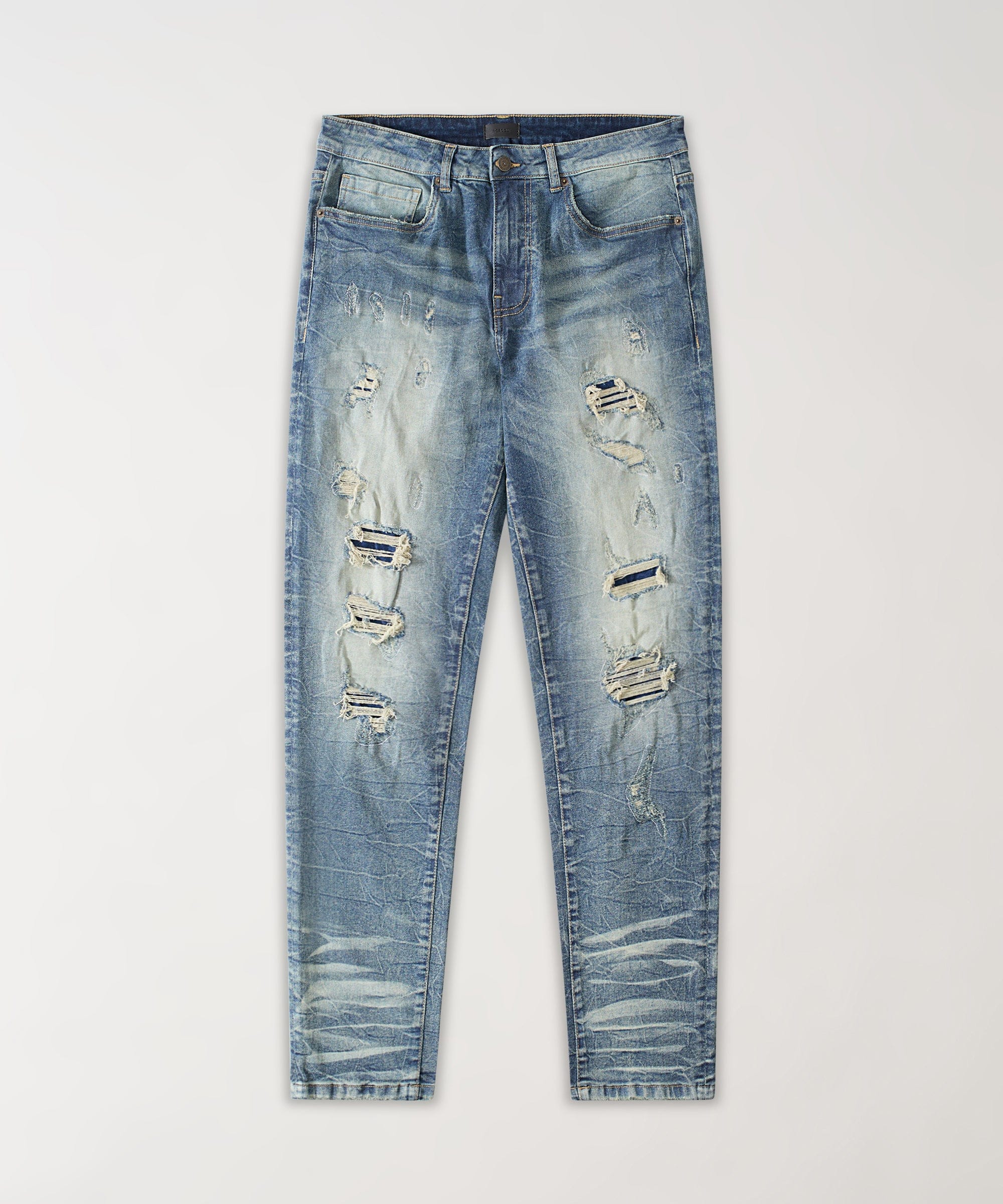 Ripped And Repaired Denim Pants - Blue
