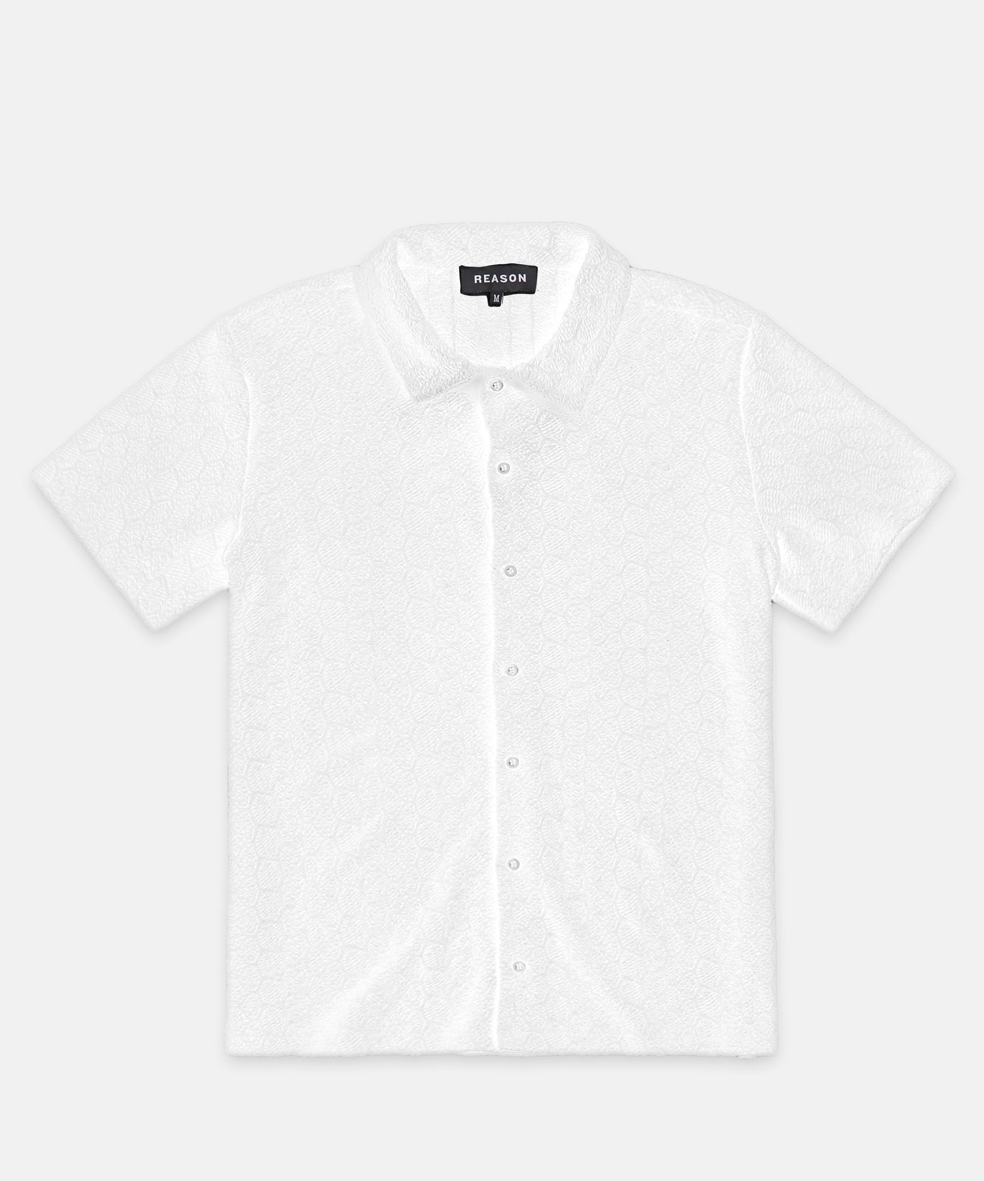 Textured Honey Comb Button Down Shirt - White