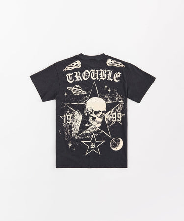Trouble Applique Short Sleeve Tee - Black