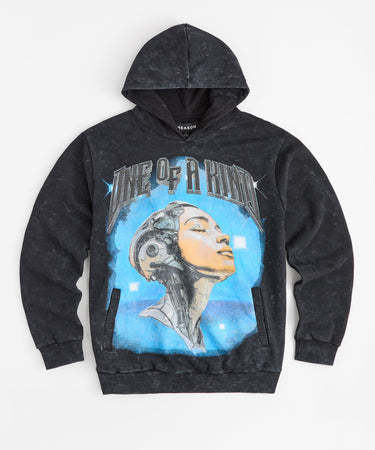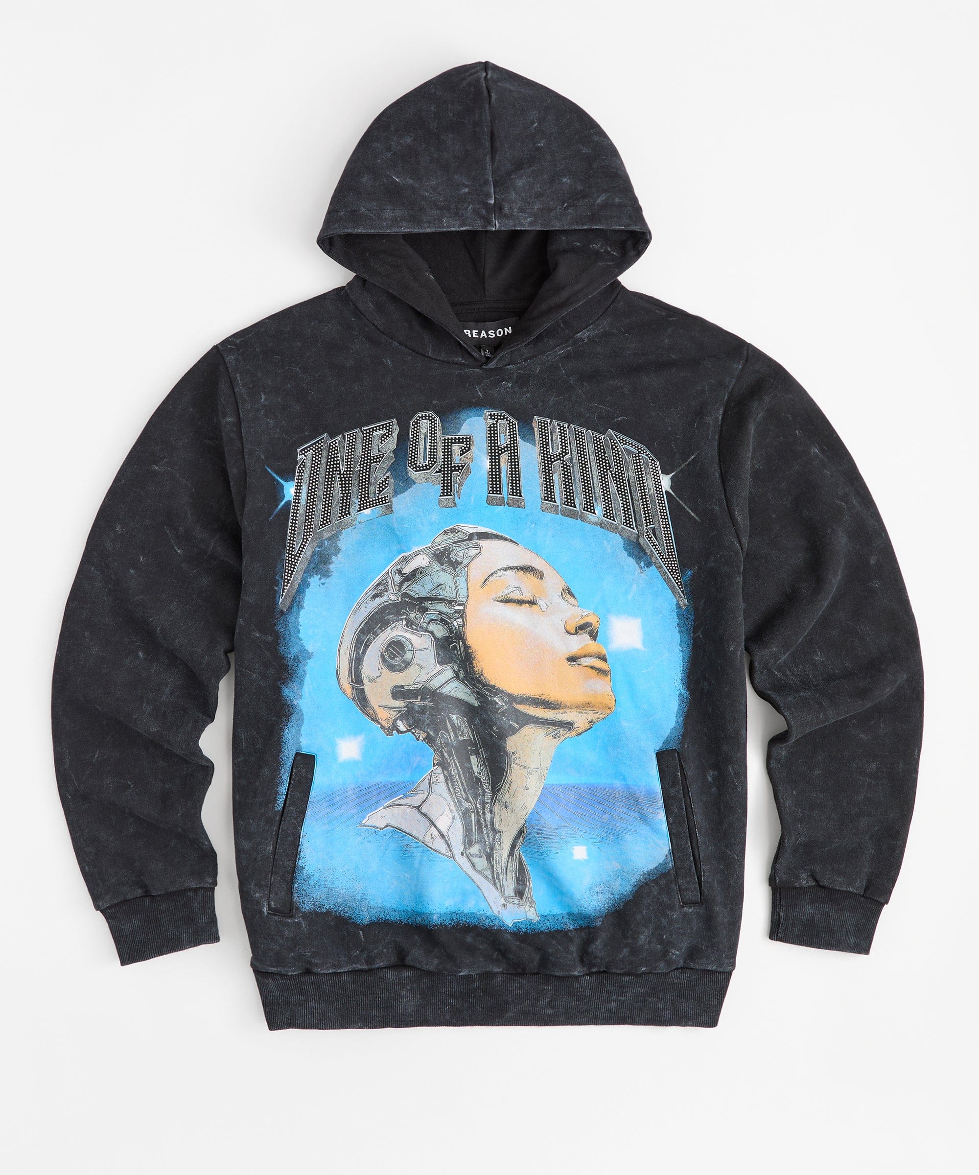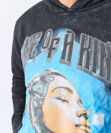 Washed One Of A Kind Rhinestone Hoodie - Charcoal